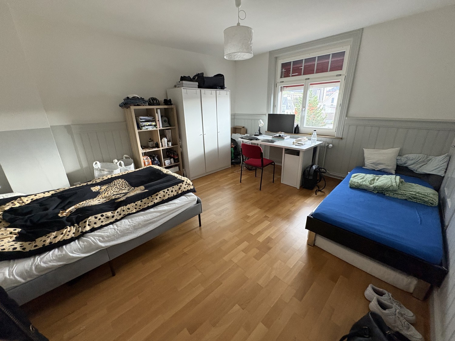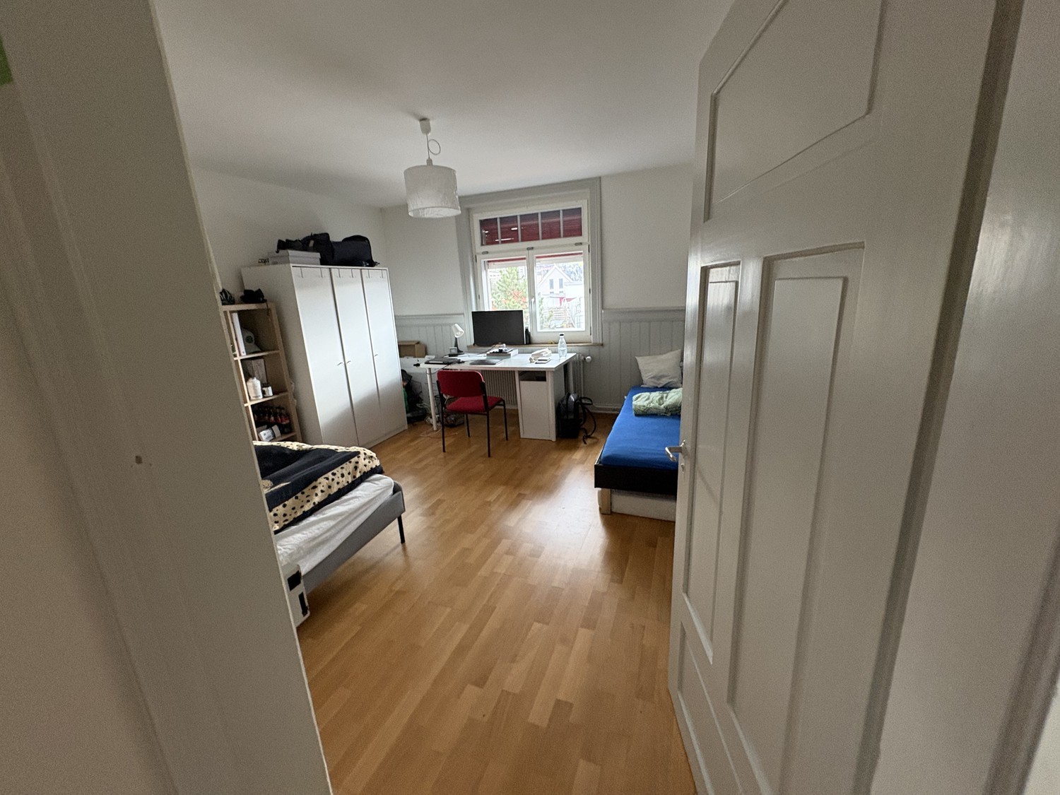 Room Available in 3-Person Shared Flat – Kolosseumstrasse, St. GallenIn our 3-person shared flat on Kolosseumstrasse in St. Gallen, one room is available. The apartment is ideal for an individual looking to join a friendly and relaxed shared flat. It is located on the 4th floor in a quiet area, bright, and fully furnished.You can choose between two rooms, depending on your preference.Option 1 – approx. 12 m²Quiet, cozy room with a window facing the inner courtyard and a view of the surrounding hills. Can be taken over unfurnished or with selected furniture.Rent: 495 CHF per monthAdditional costs: Internet approx. 13 CHF, electricity approx. 13 CHFOption 2 – approx. 16 m²Large, bright room with a wide view over the city and plenty of natural daylight. Can be taken over unfurnished or furnished.Rent: 565 CHF per monthAdditional costs: Internet approx. 13 CHF, electricity approx. 13 CHFNote: The PhD student currently living in the larger room is happy to move to the smaller room if the new flatmate prefers the bigger one.The ApartmentThe apartment is modern, well-maintained, and fully furnished.The kitchen was renovated about two years ago and features a ceramic cooktop with oven, refrigerator with freezer compartment, dishwasher, microwave, and coffee machine, as well as a small dining table for shared meals. It is fully equipped with all common kitchen utensils.The spacious living room is furnished with a sofa, a large dining table, and a TV, making it ideal for relaxed evenings or spending time together.The bathroom has also been renovated and is well maintained. It includes a bathtub with shower function, sink with mirror cabinet, and toilet. A washing machine and dryer are available for shared use in the building. In addition, a storage compartment in the attic belongs to the apartment.LocationThe apartment is well connected yet situated in a quiet area. A bus stop with direct connections to the university and the city center is about 200 meters away. St. Gallen St. Fiden train station can be reached within a 3-minute walk. A large Migros supermarket is only one minute away. The University of St. Gallen and the city center can be reached on foot in about 15 minutes.Shared Flat LifeCurrently, a PhD student and a young and easygoing researcher live in the apartment. We are looking for one new flatmate to join our calm and respectful shared living environment. Shared activities are welcome, but there is no obligation — everyone values a good balance between socializing and personal space.If you are interested, we look forward to your message and would be happy to show you the apartment during a viewing.