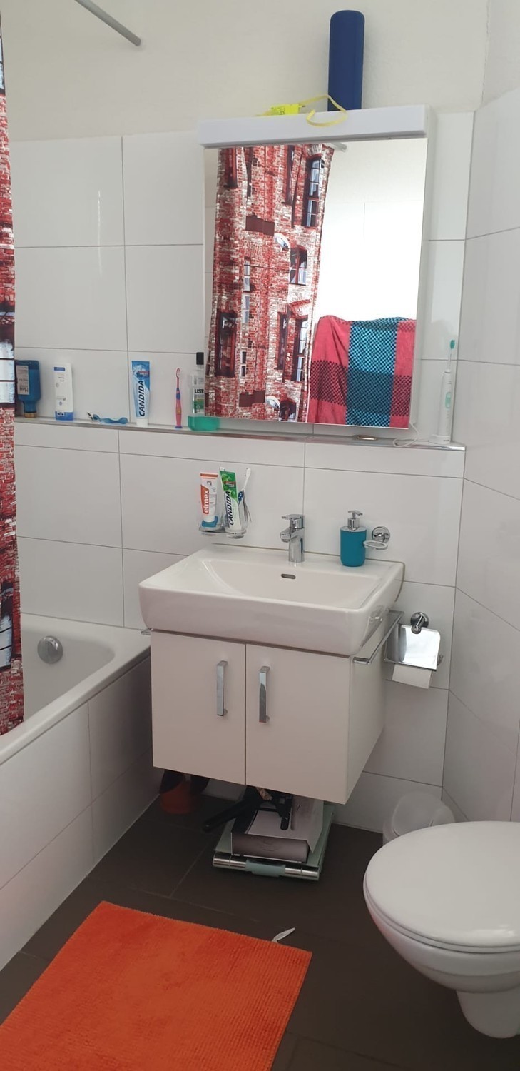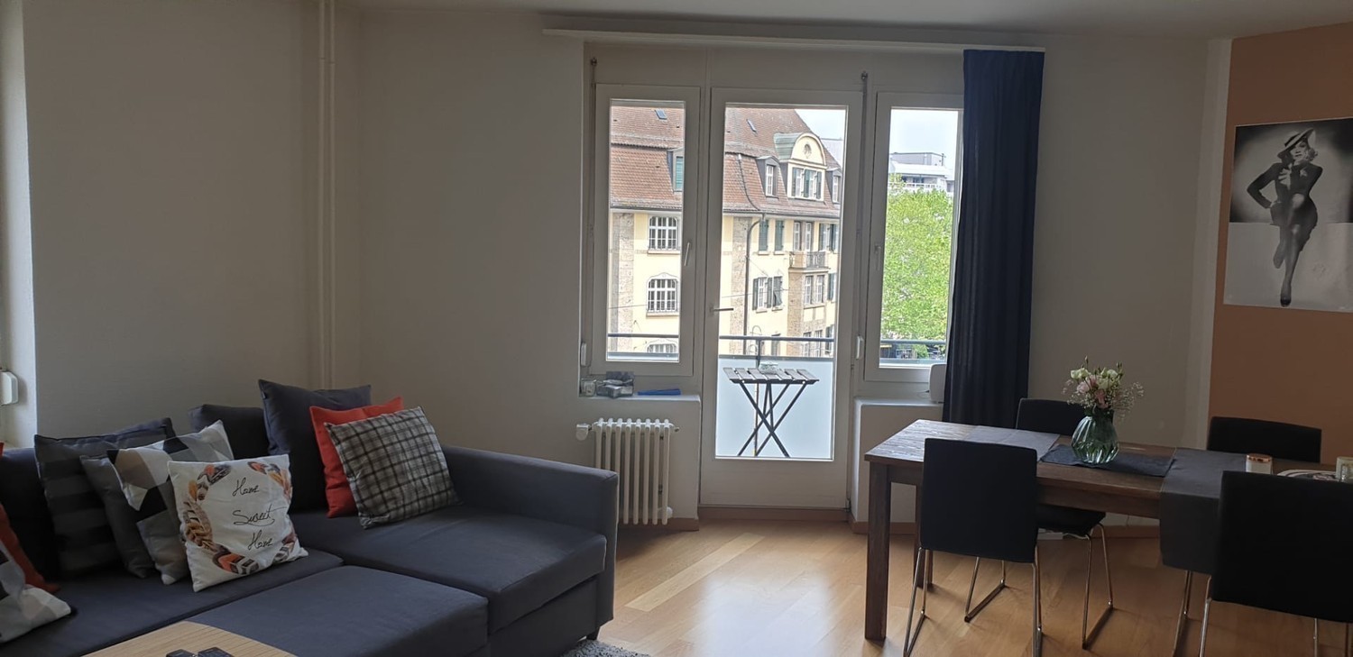 Leider verlässt uns ein Mitbewohner. Daher suchen wir ( Dominik 31 Handwerker und Severin 46 Restaurantleiter seit 13 Jahren in der Wg ) einen/e neue/n Mitbewohner/in. Die Wohnung hat insgesamt 112 qm, 2 Bäder, moderne Küche, Trockner und Waschmaschine in der Küche, sowie ein Wohnzimmer. Zu der Wohnung gehört ebenfalls eine Dachterasse. Es handelt sich um keine Zweck Wg ! Mietzins : 1000.- CHF pro Monat ( inklusiv Strom, Wasser usw. ). Kaution : 1000.-. Das Zimmer hat 14 qm und wird unmöbliert und unbefristet vermietet.Bei Fragen, einfach fragen.