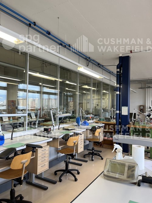 Ce bâtiment jouit d’une excellente situation géographique et dispose de 4’900 m² de surfaces artisanales, et administratives divisibles dès 365 m². Ces locaux sont tous aménagés, clé en main. Descriptif technique: • Quais de chargement/déchargement • Ascenseur • 1 monte-charge (charge maximale 1'600 kg) • 2 monte-charges (charge maximale 3'200 kg) • Charge au sol : 1T • Hauteurs sous-plafond : entre 3.5 et 4.2 mètres • Sprinkler • Détection incendie • Une grande cafétéria avec cuisine professionnelle • Blocs sanitaires avec douches • Parkings : 17 PP • Loyer dès CHF 220.-/m²/an