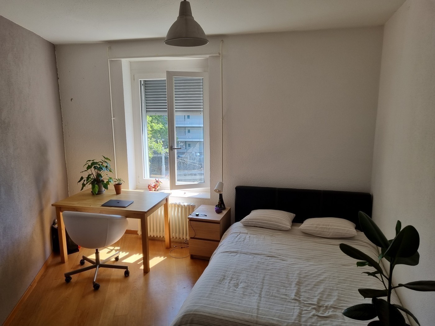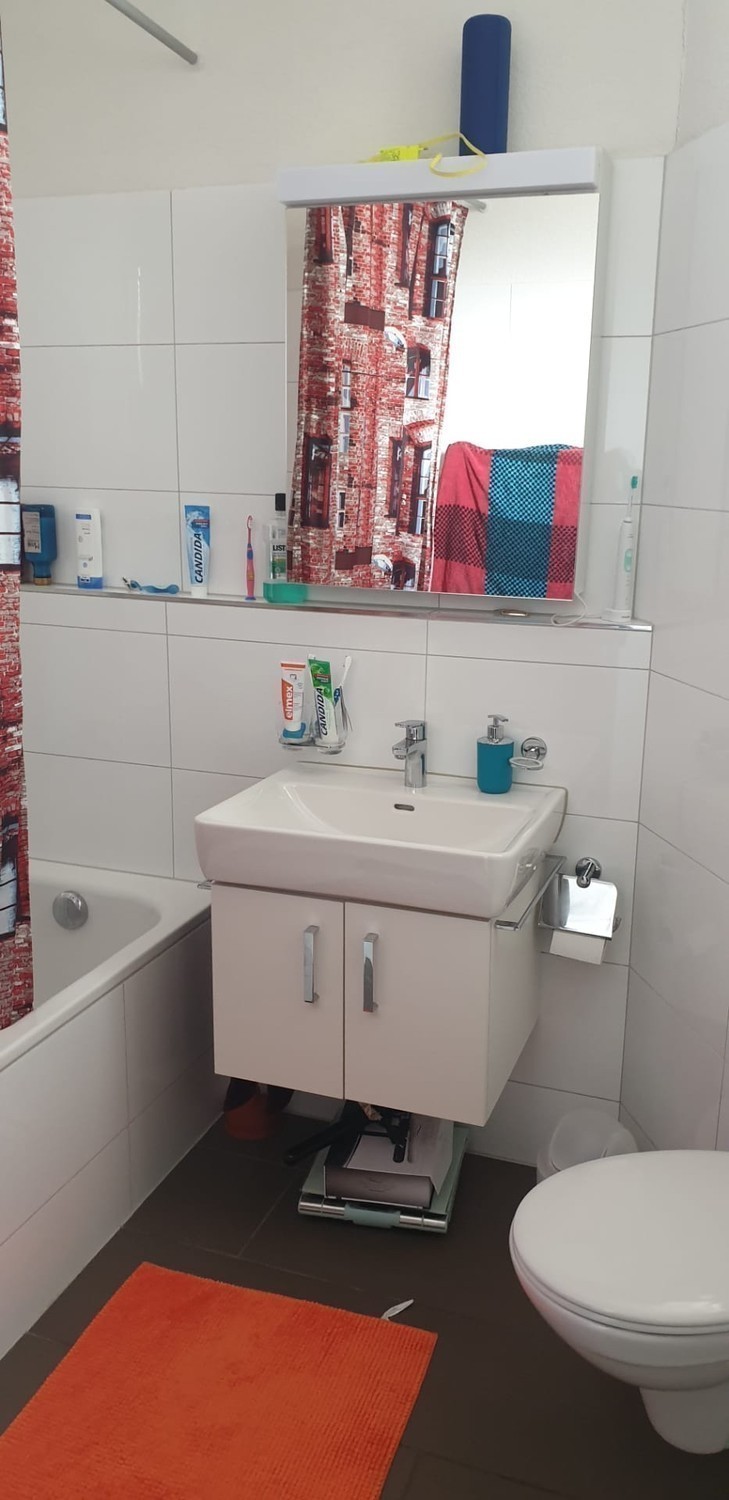 Leider verlässt uns ein Mitbewohner. Daher suchen wir ( Dominik 31 Handwerker und Severin 46 Restaurantleiter und seit 13 Jahren in der Wg ) einen/e neue/n Mitbewohner/in. Die Wohnung hat insgesamt 112 qm, 2 Bäder, moderne Küche, Trockner und Waschmaschine in der Küche, sowie ein Wohnzimmer. Zu der Wohnung gehört ebenfalls eine Dachterasse. Es handelt sich um keine Zweck Wg ! Mietzins : 1000.- CHF pro Monat ( inklusiv Strom, Wasser usw. ). Kaution : 1000.-. Das Zimmer hat 14 qm ist unmöbliert und unbefristet zu Vermietung.