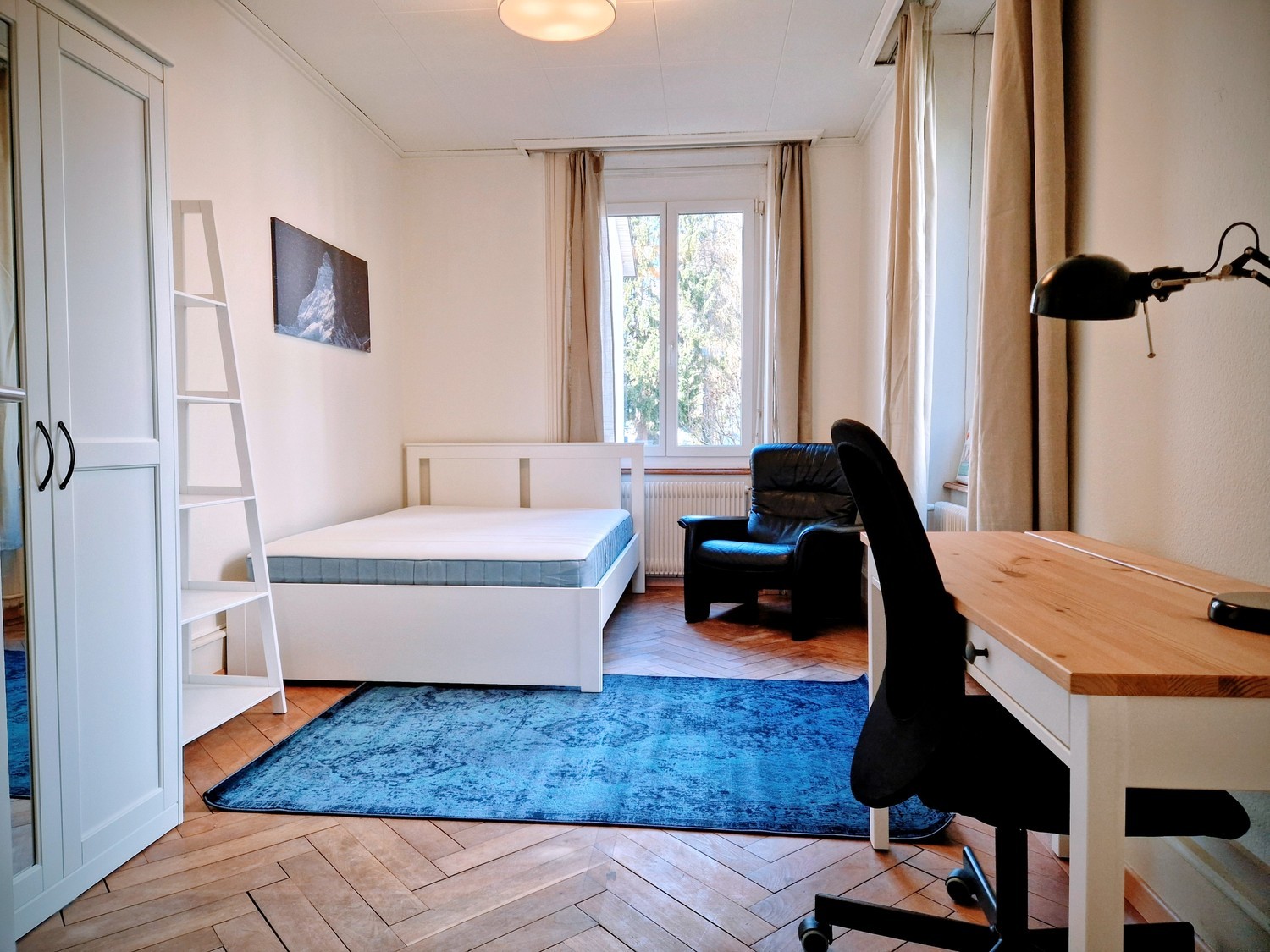 This inviting room is situated within a 4-person shared freshly renovated living space in the picturesque and conveniently located area of Zurich Oerlikon. About the Apartment It's located on the ground floor, you enjoy the brightness and calmness, despite being in the city. The apartment is freshly removed: you'll be the first one to move in. ✔️ 4 large bedrooms ✔️ A spacious, bright kitchen with a balcony – fully equipped with all appliances, including a dishwasher ✔️ Bathroom and WC are separate ✔️ Laundry facilities in the building – with flexible access when available About the Room ➡️ Your room is thoughtfully furnished, and the setup is ideal if you want more space and privacy: it has a separate entrance outside of the apartment. Your rental includes: 🌟 New, large double bed, with a night table, a wardrobe for pleasant sleep 🌟 Spacious desk paired with a comfortable chair for easy home-office days 🌟 Home decor like curtains, painting, and indirect light for a homey feeling 🔑 Each room has its own key for security and privacy All the furniture is brand new - you'll be the first one to move in. Location & Transport Bus stop in front of your doorstep - 3 stops to Bahnhof Oerlikon, 4 stops to Schwammendingenplatz 10 min walk to buzzing Oerlikon center (supermarkets, restaurants, bars, shopping, trains, trams) 15 min walk to the University of Zurich Irchel 15 min walk to serene Irchel Park 5 min walk to nature and the forest of Zurichberg All-Inclusive Rent The rent covers all the side costs such as: high-speed internet, water, electricity, heating, furniture, and weekly cleaning of shared areas. Rates depend on the length of stay: 📌 6+ months (unlimited stay) - 890 CHF/month 📌 5-6 months – 990 CHF/month 📌 3-4 months – 1'090 CHF/month 📌 1-2 months – 1'190 CHF/month Perfect for You If... ✔️ You're new in town and want to meet people ✔️ You appreciate a balance between privacy and social living ✔️ You're looking for a comfortable, move-in-ready home in Zurich ‼️ A viewing most likely will be in Monday afternoon. Video call is possible. Interested? Reach out with a short description of yourself to get more information.