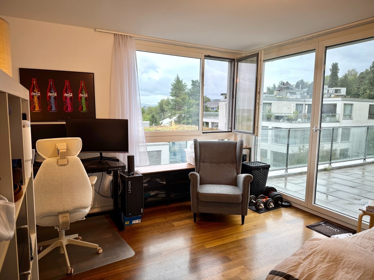 We are looking for a someone to take over a room in an awesome penthouse for the months of April and May.The room will be available from the 1st of April 2026 (can be a bit later if preferred). About the room: It's a large bedroom with access to an equally large terrace, an amazing view over the city, and enough space for all your essentials. You share a bathroom with one roommate. The room is currently furnished but certain items may still be taken by the previous tenant upon conversation. The room is rented unfurnished, with a possible takeover of the furniture from the previous flatmate. As it is a short-term rental, the deposit consists of 1 month's rent.About our great top floor penthouse: The place has 5 bedrooms, 3 bathrooms (incl. showers), 1 huge kitchen/living room with 2 fridges and a dishwasher. In total there are 4 big roof terraces, two of which accessible from the common area which is perfect for chilling, BBQ, some workouts (we have a mini gym on one terrace) or just some beers. We also have a basement, for storage and our own washing machine and dryer. Other perks are a cleaning lady twice a month and ultra fast 10Gbps internet. Our location: We are very well connected to all you need: tram 3 and bus 80 and 67 are only 3 minutes away on foot, allowing you to reach the city center in 10-15 minutes. Supermarkets like Migros, Coop and Denner are only a few minutes away, as well as several restaurants. Bonus: the Uetliberg is literally a 2 minute walk away, which offers plenty of options for hiking, mountain biking, and just a nice outdoor walk.