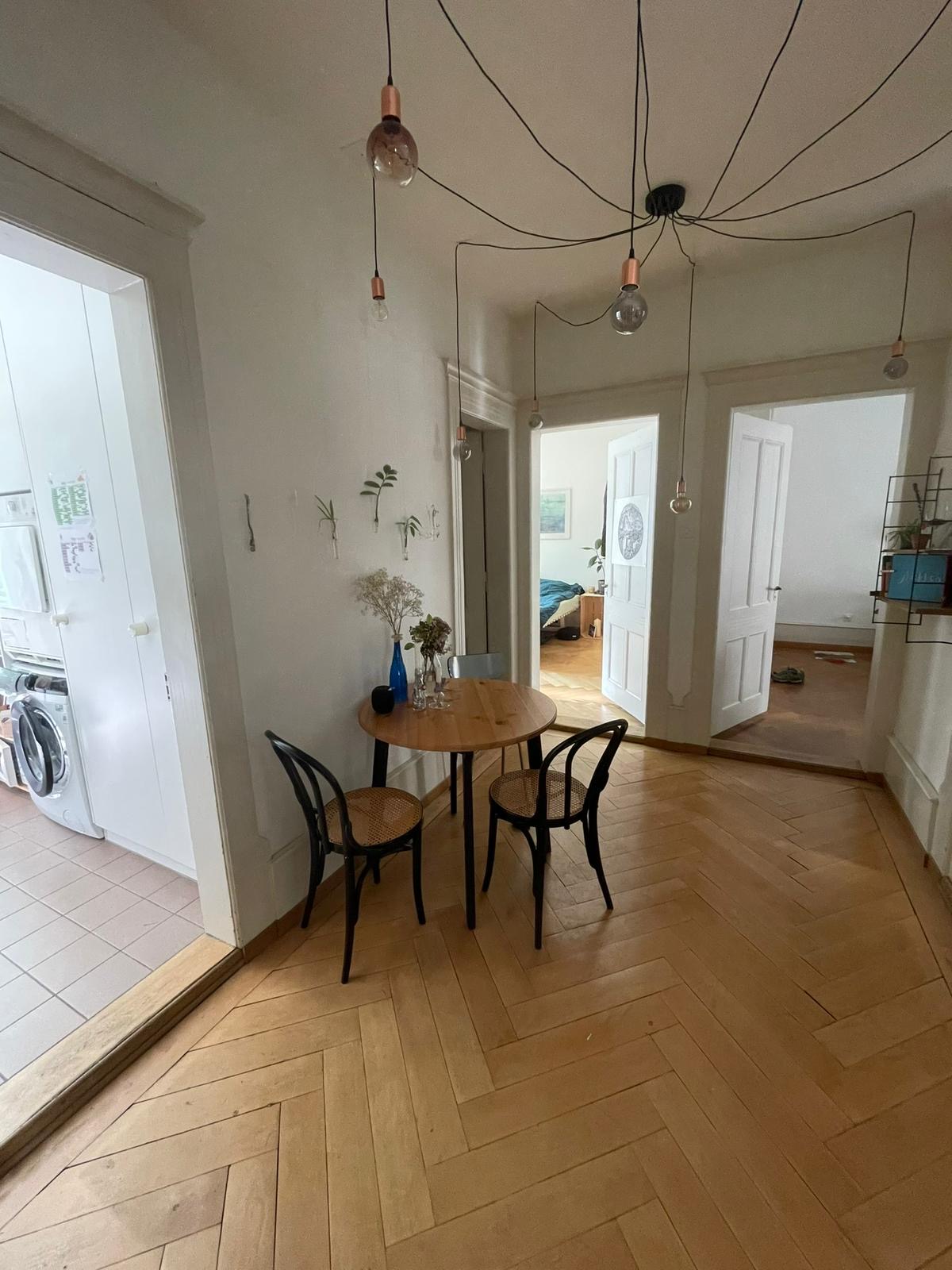 Wir sind eine Frauen WG (23-27) im Monbijou und suchen zwischen 1.Mai bis ende Juli (Zeitraum verhandelbar) ein Mitbewohner oder eine Mitbewohnerin. Das Zimmer ist 23qm gross, 600Fr/Monat. (Preis auch verhandelbar)Wir sind Sport-, Hebamme-, und Zahnmedizin Studentinnen, sind sportlich geniessen aber auch mal einen gemeinsamen Abend zuhause. Du darfst dich in unserer freundschaftlichen WG gerne beteiligen oder das Zimmer nur als Zwecks-WG benutzen. Sauberkeit und Ordnung sind uns in allen Gemeinschaftsräum sehr wichtig! Wir freuen uns über deine Nachricht