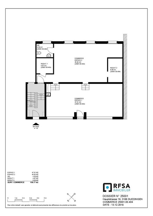 BESCHREIBUNG Belebte Strasse, im Herzen Düdingens (Hauptstrasse 19). Räumlichkeiten zentral gelegen, in der Nähe von der Migros (120 Meter). Öffentliche Parkplätze. Anderen Einkaufsmöglichkeiten in der näheren Umgebung. In gutem Zustand, betriebsbereit als Verkaufsfläche. MIETBEDINGUNGEN Monatszins ohne NK : CHF 2180.00 (für eine Vermietung im vorgefundenen Zustand). Nebenkosten, pro Monat : CHF 210.00. TOTAL : CHF 2390.00. VERMIETUNGSBESCHRÄNKUNGEN Zubereitung warmer Mahlzeiten nicht möglich (die Räumlichkeiten nicht mit einer küche ausgestattet sind, keine Möglichkeit, eine Küchenhaube mit Dachauslass zu installieren, kein technischer Schacht)). BELLE SURFACE DE VENTE D'ENV. 110 M² AMENAGEE EN TANT QUE BOULANGERIE-TEA-ROOM DESCRIPTIF Rue avec passage, au coeur de Düdingen. Situation centrale, à proximité de Migros (120 mètres). Parking public dans les proches environs. Places de parc sur le domaine public devant les locaux. Nombreux autres commerces implantés dans les environs immédiats. En bon état, prêts à l'exploitation en tant que surface de vente. CONDITIONS DE LOCATION Loyer mensuel : CHF 2180.00 (pour une location en l'état). Frais accessoires : CHF 210.00. TOTAL : CHF 2390.00. RESTRICTIONS DE LOCATION Préparation de plats cuisinés chauds pas possible (les locaux ne sont pas équipés d'une cuisine, pas possible d'installer une hotte de ventilation de cuisine avec sortie en toiture, pas de gaine technique).