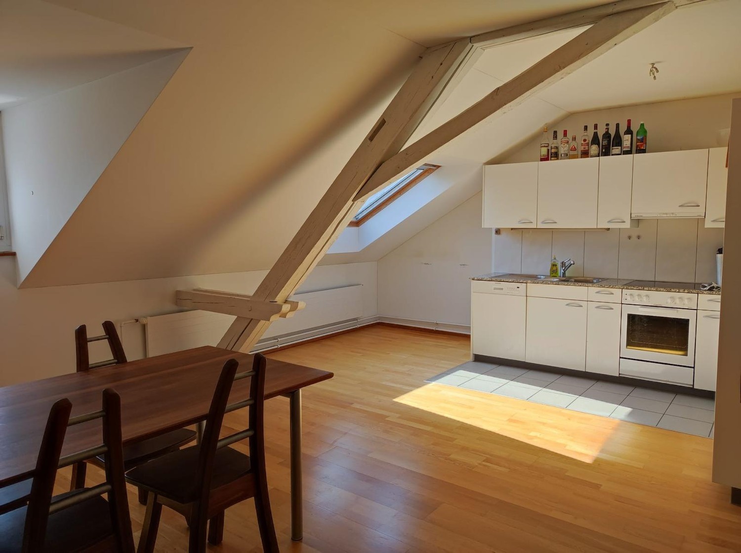 Hallo zusammen! In unserer 3er-WG wird ab dem 01.05.2026 ein Zimmer frei, und wir suchen einen neuen Mitbewohner*in (m/w/d), der/die mindestens 23 Jahre alt ist und Lust hat, Teil unserer entspannten und sportlichen WG zu werden. Deine Mitbewohner: Eriks (34) - Maschinenbau-Ingenieur mit Master aus Dresden. Er ist sportlich aktiv, geht ins Gym und macht gerne Skitouren. Ana Maria (32) - Persönliche Assistentin aus Kroatin. Sie spricht fliessend Kroatisch, Italienisch, Spanisch und English. Singt gerne und arbeitet ab und zu als Standupcomedian. Unsere WG ist zurzeit eher eine Zweck-WG. Es bleibt jedoch dir überlassen, ob du dich stärker einbringst oder es bei einer reinen Zweck-WG belassen möchtest. Zur Wohnung: Lage: Altbau im 4. Stock (Dachgeschoss) ohne Aufzug. Super zentral, nur 3 Minuten zum Bahnhof, Einkaufsmöglichkeiten in direkter Nähe. Zimmer: Dein zukünftiges Zimmer ist ca. 15 m² gross unmöbiliert (Schrank und Pult können aber vermutlich übernommen werden). Gut zu wissen: 1 Badezimmer, Waschküche (nach Eintragung nutzbar), kein Keller, aber ein Estrich, der direkt von der Wohnung aus zugänglich ist. Was wir uns von dir wünschen: Bitte schick uns eine ausführliche Bewerbung mit: Einem Text, in dem du dich vorstellst: Wer bist du, was machst du, warum möchtest du bei uns wohnen, und was gibt es sonst noch über dich zu wissen? Falls du willst mit einem aktuellen Foto von dir. Wir freuen uns auf deine Nachricht und sind gespannt, dich kennenzulernen! :) Sämtliche Anfragen mit einem Standarttext werden nicht berücksichtigt. Viele Grüsse, Michael, Eriks und Ana Maria