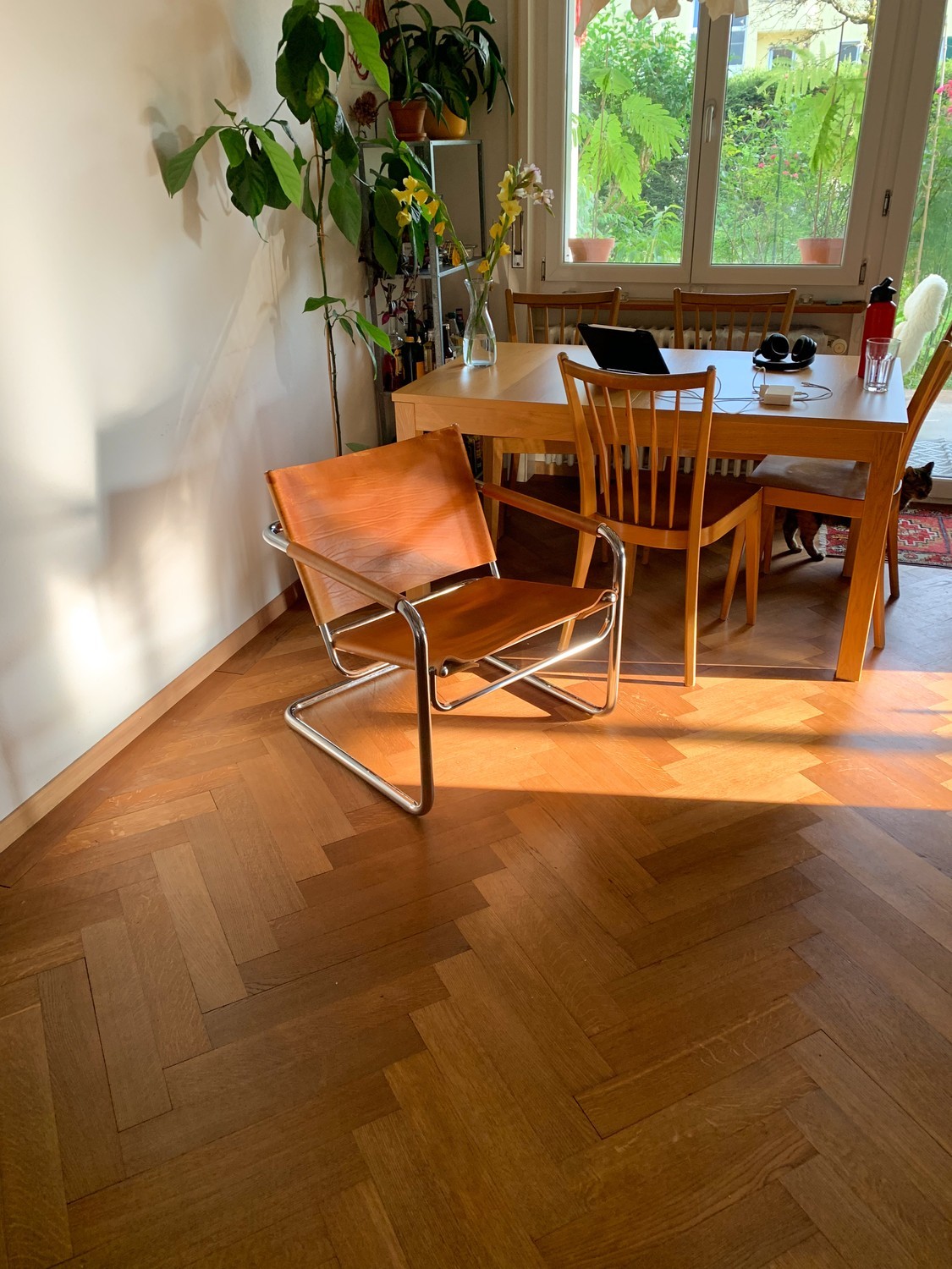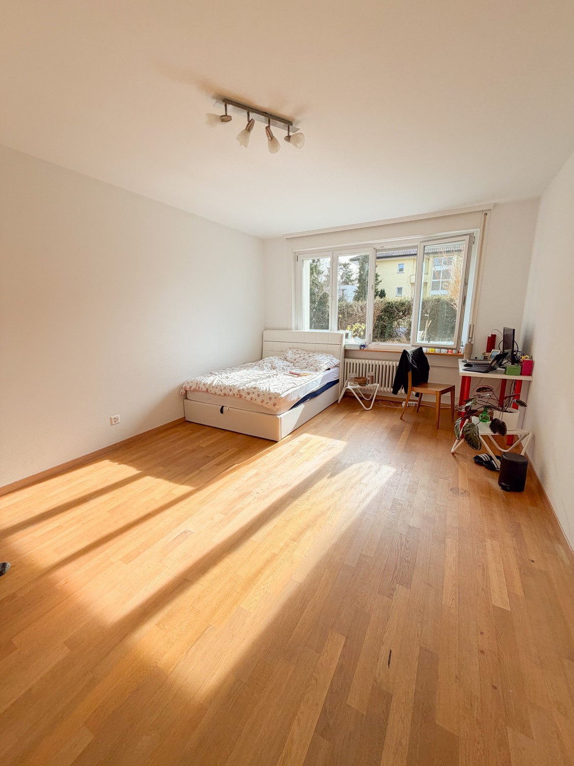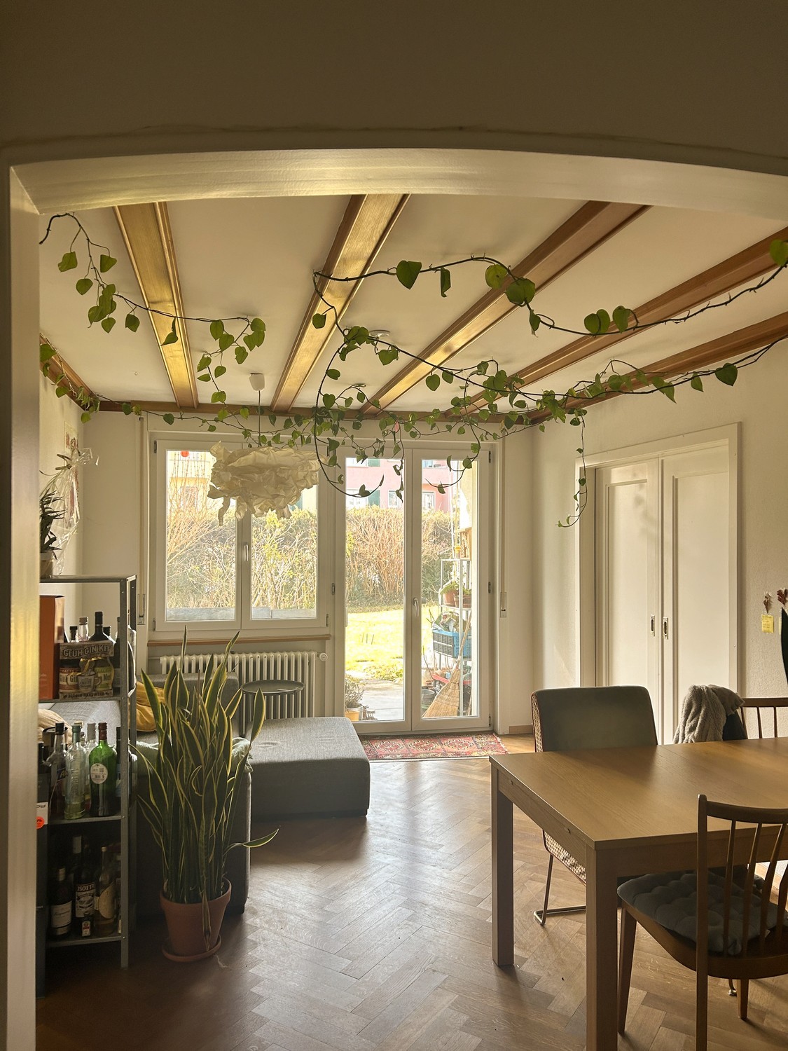 In unserer schönen 122 qm großen Erdgeschosswohnung im Berner Ostring wird ein Zimmer frei Die Wohnung liegt sehr entspannt in einer ruhigen Gegend, direkt neben einem Weingut beim Paul-Klee-Zentrum, in der Nähe vom Egelsee. Wir haben einen Garten, den wir mitbenutzen können. Zum Zimmer: Das Zimmer ist 22,1 qm groß, sehr hell und verfügt über praktische Einbauschränke. Man hat fast den ganzen Tag direktes Sonnenlicht mit Blick auf den Garten! Zur Wohnung: Wir haben ein gemeinschaftliches Wohnzimmer, zwei Bäder, einen kleinen Balkon, eine Terrasse und eine Waschküche. Tram und Bus sind in ca. 3 Minuten erreichbar, Supermärkte gibt es ebenfalls ganz in der Nähe. Haustiere haben wir aktuell keine! (Die Katze auf dem Bild zieht gerade mit aus) Nebenkosten ca. 50 Franken pro Monat, die Rechnung kommt alle 3 Monate. Zu uns: Nicodemos (23) – Modedesigner, tanzt leidenschaftlich Salsa und spielt Klavier Naomi (26) – Psychologiestudentin, ebenfalls Salsa-begeistert Alex (31) – Arzt mit einer großen Liebe für Pflanzen Wen wir suchen: Eine offene, kommunikative Person, der ein respektvolles und entspanntes Zusammenleben wichtig ist. Sauberkeit sollte für dich selbstverständlich sein. Wenn du dich meldest, kann es sein, dass wir etwas Zeit zum Antworten brauchen, da wir erst alle Anfragen sammeln – wir melden uns aber auf jeden Fall zurück. Schreib uns doch gerne ein paar Zeilen über dich und was du gerade so im Leben machst. Wir freuen uns, von dir zu lesen