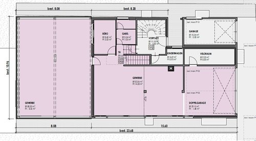 Gewerberaum mit Büro, Lager und Archiv Nutzbar als Lager, Werkstatt, Atelier, Hobbywerkstatt, usw. mit: • Starkstromanschlüsse (CEE16/400V) und 230V • Ebenerdigem Zugang • Parkplätze vor Doppelgarage dabei • Aufteilung: Werkstatt 58,9m², Lager 80m² • Doppelgarage 29,2m², Abstellraum 9,2m², DU/WC 5,5m² und Büroraum mit Glasfaseranschluss 8,6m² • Velounterstand gratis zur Mitbenutzung • Auf Grundriss blau umrahmt vorderer Bereich auch separat zu mieten für CHF 1280.- • Hinterer Bereich (links von Plan) auch separat zu mieten für CHF 490.- • Aussenparkplätze zu mieten für CHF70.-/Parkplatz • Optional: • Lagerraum UG/ LS-Keller/ Archiv 9,2m² für 120.- zusätzlich zu mieten