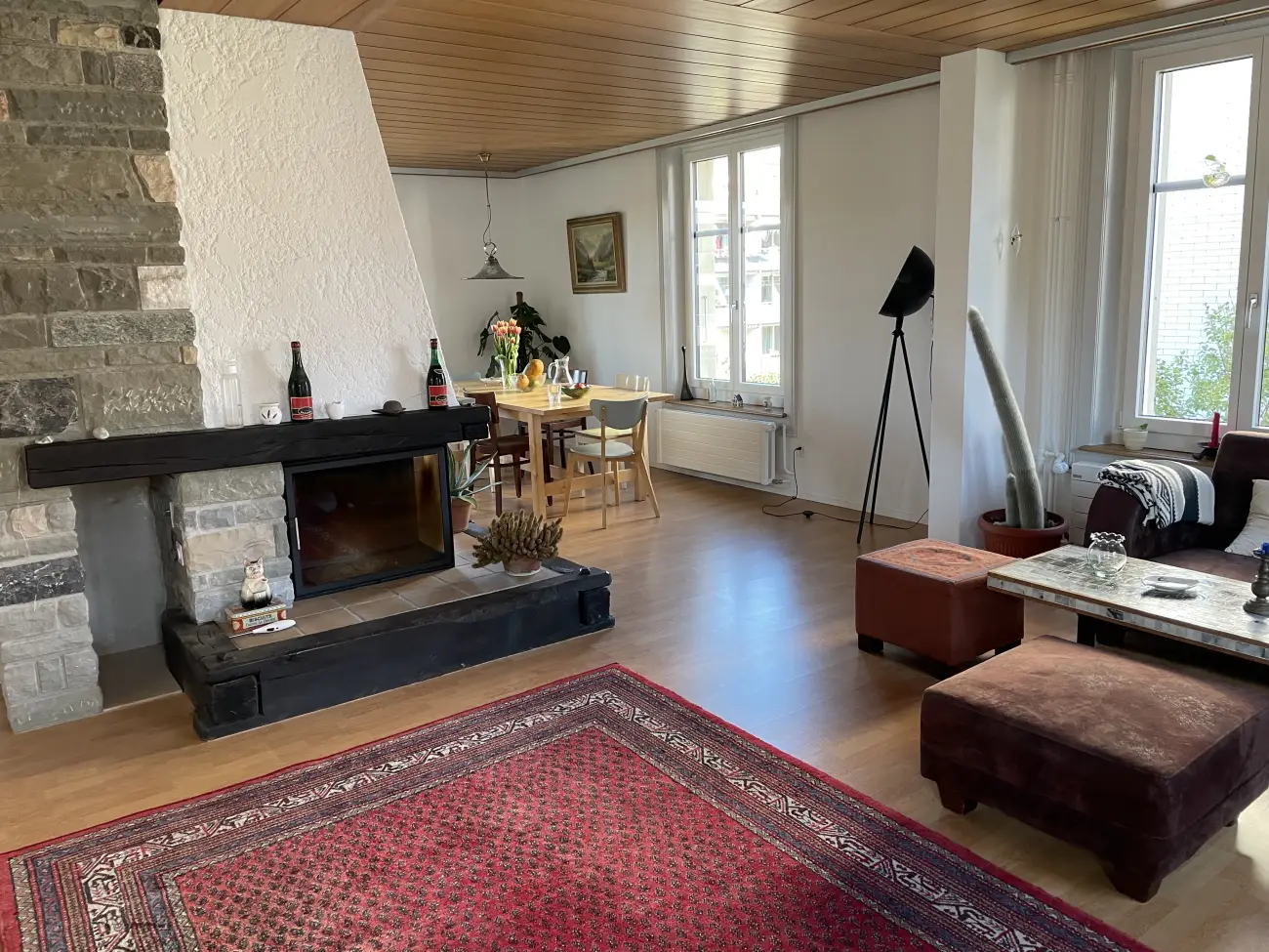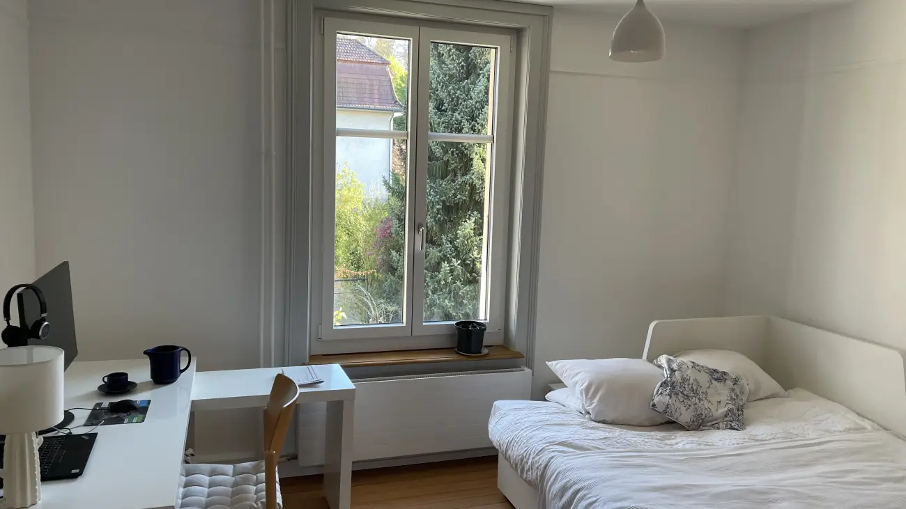 Wir vermieten an eine Person oder paar eine helle möblierte Zimmer in unserer geräumigen 5.5-Zimmer-Maisonette-Wohnung. Die Wohnung bietet auf drei Etagen viel Platz und wurde im Jahr 2021 komplett renoviert.Die Highlights der Wohnung:Grosszügiges Wohnen: Großes Wohnzimmer mit gemütlichem Cheminée.Komfort: 4 Schlafzimmer insgesamt, 2 separate WCs und 1 Badezimmer.Besonderes Extra: Ein ausgebauter Estrich/Dachboden dient als zusätzliches Gästezimmer oder Rückzugsort.Traumhafter Aussenbereich: Ein großer Garten mit Kräutern, Obstbäumen, einem dekorativen Teich und vielen Blumen lädt zum Entspannen ein.Parkmöglichkeiten: Eine Garage und zusätzliche Stellplätze für bis zu 3 Autos sind vorhanden.Suchen Sie ein ruhiges und einzigartiges Zuhause? Wir sind Riccardo (24), Zeno (29) et Jean-Pierre (24) und freuen wir uns auf Ihre Kontaktaufnahme!