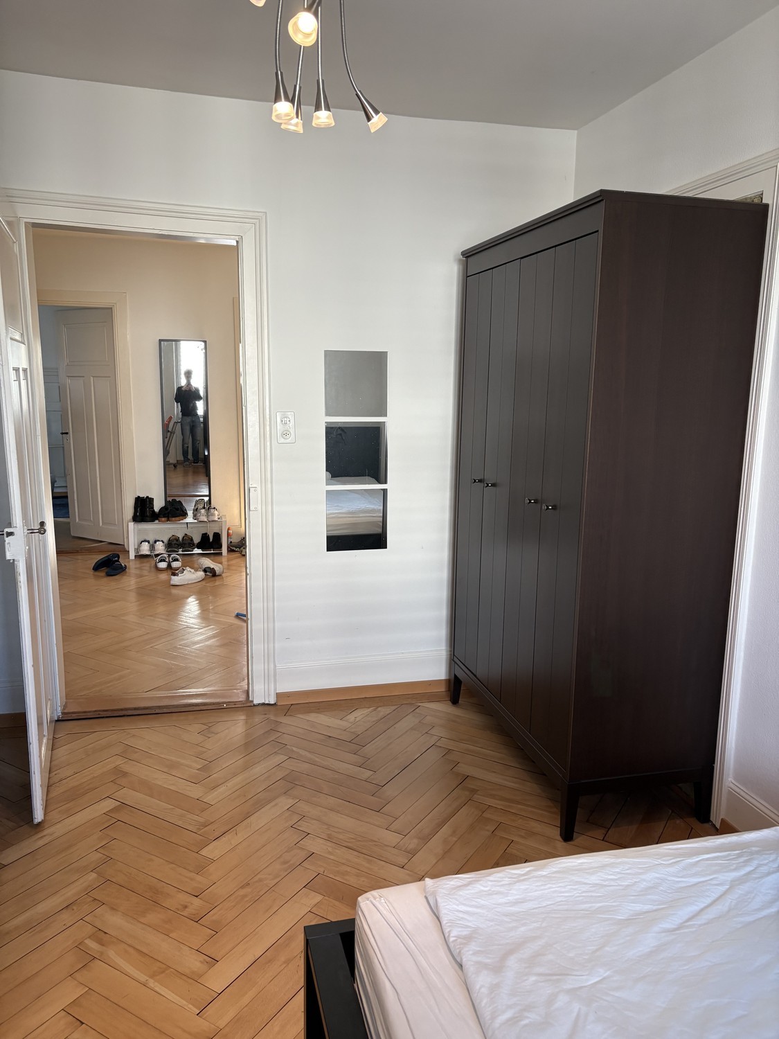 Available from June 1, 2026 (negotiable).This is a 14m² room in a 5 1/2-room apartment with 113m². The room is fully furnished and the furniture is for sale for 400 CHF.The furniture includes a bed, desk, office chair, clothes rack, and storage shelf. The additional costs for electricity and heating are not fully included in the rent. Only the fixed costs (advance payment and deposit for heating, electricity, and internet) are included in the rent. The rest are paid in a yearly deposit that is shared equally among all subtennants (equated to approx. 40 month). This amount will be returned after the apartment (and room) has been left in good condition and without damage. The apartment is fully functional and can be used without restriction. The shared areas are the bathroom, toilet, living and dining room, kitchen, foyer, and balcony. There is also a washing machine and dryer, which can be used without restriction by the entire household. The apartment is shared with 3 roommates. They are 3 sociable students studying for bachelor's and master's degrees. The house comprises 3 apartments, all of which are occupied by students. A student subtenant would therefore fit in very well with this group. The university is about a 10-minute walk away. In the immediate vicinity of the apartment, there is a Migros, a Denner, a Spar, and the Langgasse and Rosenheimstrasse bus stops (lines 3, 4, and 6). There is also a large Migros supermarket within a 3-minute walking distance. There are also many restaurants and service providers (such as drycleaner) in this area.