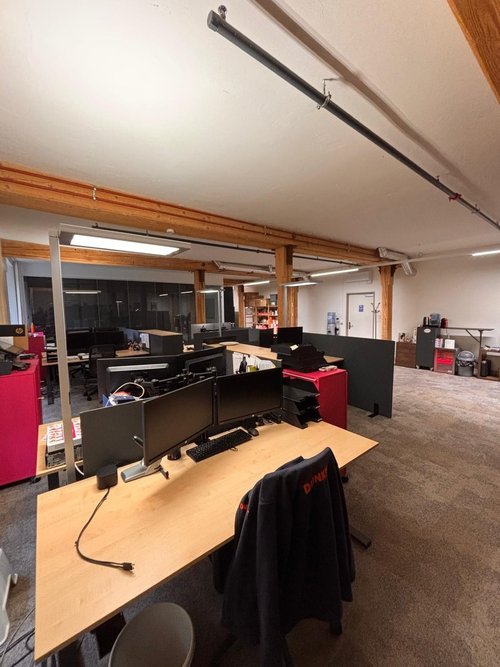 Wir vermieten nach Vereinbarung diese tolle Bürofläche im 3. OG in der Spinnerei Aathal. Die Fläche überzeugt mit folgenden Vorteilen: – vollständiger Büroausbau mit Teppich, Licht, Steckdosen und Klimaanlage – helle, lichtdurchflutete Fläche mit Ausblick ins Grüne - Altbau verleiht individuellen Charakter – Die Fläche hat einen praktischen Grundriss. Der Raum ist mit einer Glastrennwand unterteilt in 2 Büroräume. So entsteht ein parktisches Sitzungszimmer – Pausenraum mit Teeküche und Mikrowelle zur Mitbenutzung für alle Mieter im Gebäude vorhanden – gut erschlossene Lage (Ende Autobahn und Bahnhof Aathal in 5 min Gehdistanz)