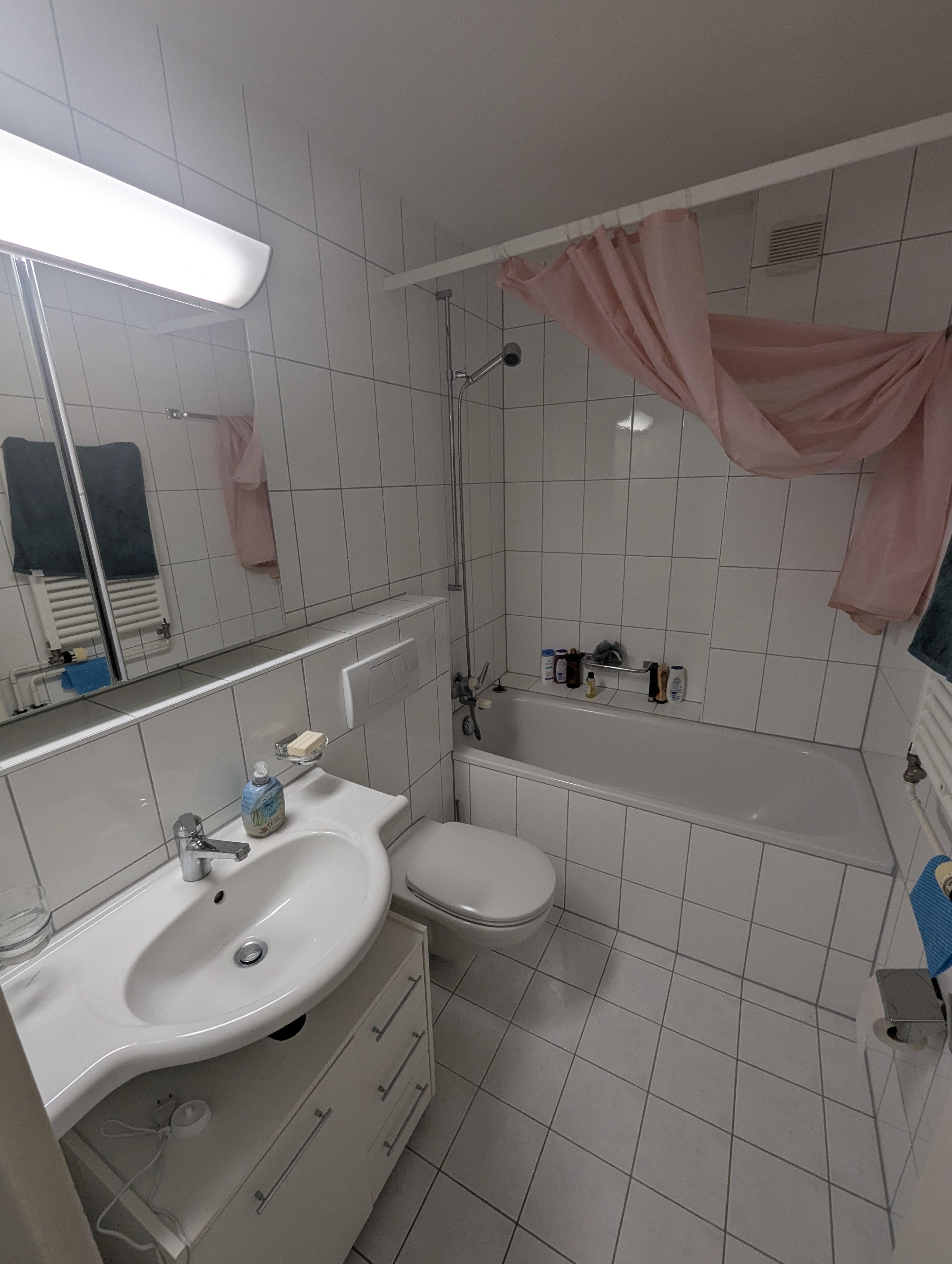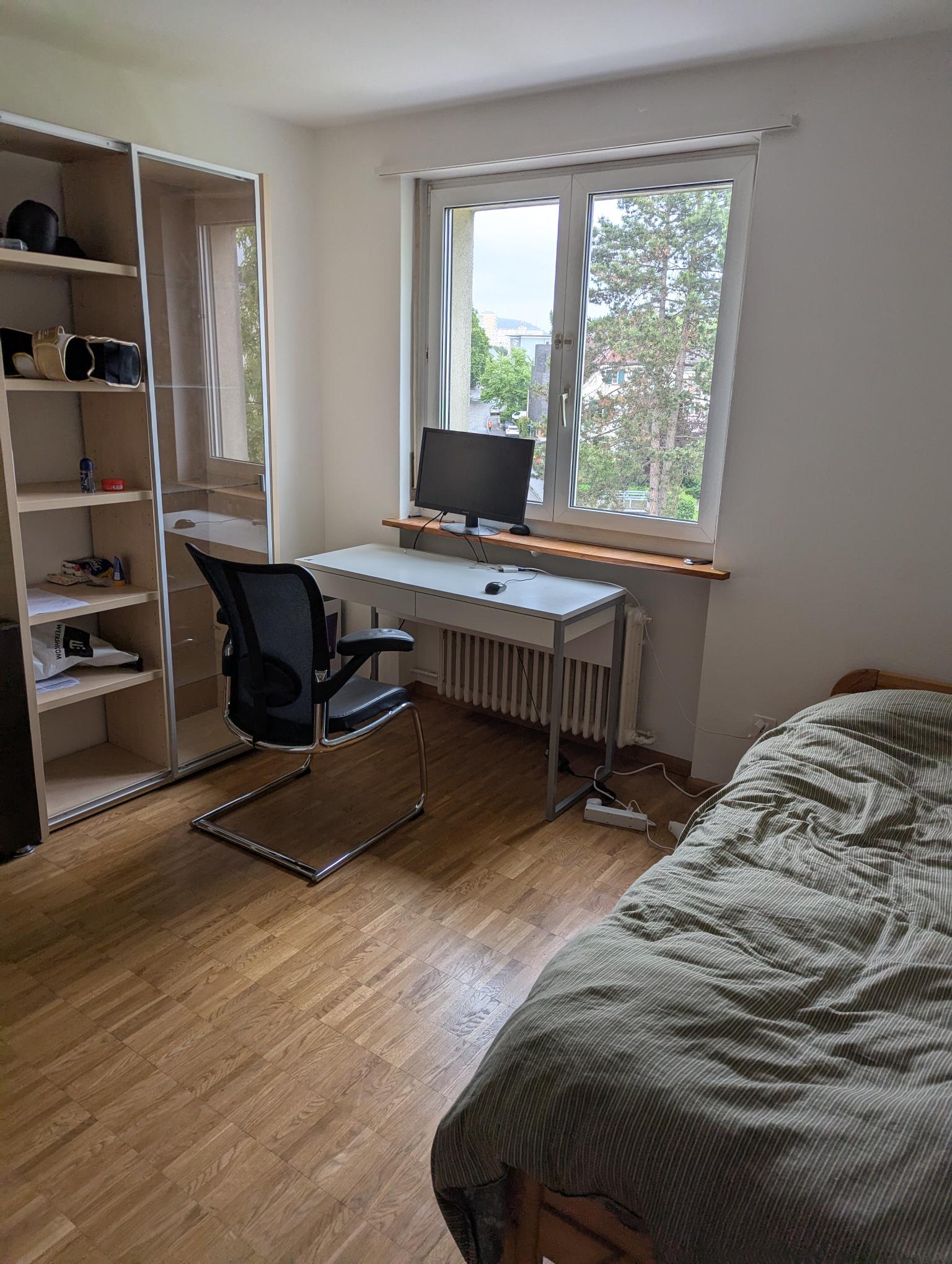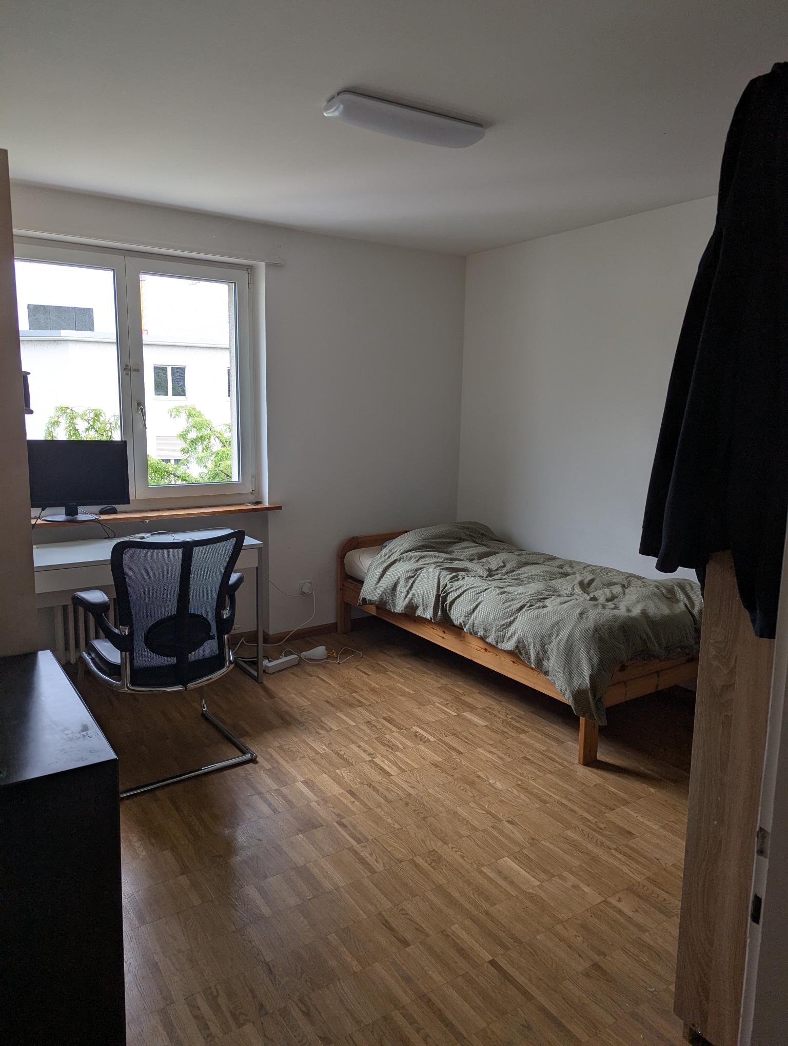 Lage & Wohnung Wir bieten ein ca. 11 qm großes, helles Zimmer in Grenznähe zu Basel (Rheinstrasse, Birsfelden). Die Wohnung ist funktional und voll ausgestattet: Moderne Küche mit Spülmaschine, Bad sowie Mitbenutzung von Waschmaschine/Tumbler, Velokeller und Garten-Innenhof. Wichtig zu wissen: Die Wohnung hat kein gemeinsames Wohnzimmer, was die Miete (inkl. NK) sehr attraktiv macht und für eine ruhige Atmosphäre sorgt. Das Zimmer kann auf Wunsch möbliert übernommen werden.Die Lage ist unschlagbar:• ÖV: Tram/Bus • Einkaufen: Migros, Coop, Denner direkt um die Ecke. Aldi (DE) 9 Min. mit dem Velo.• Natur & Sport: Birsköpfli und Rheinpark direkt vor der Tür – ideal zum Joggen oder Schwimmen.Wer wir sind Wir sind drei berufstätige Männer (28, 33, 33), die ein unkompliziertes und respektvolles Miteinander schätzen:• Joel (33): Projektmanager, sportbegeistert (Boxen, Klettern, Yoga) und am Wochenende oft in Süddeutschland unterwegs.• Jakob (33): Web Developer (Home-Office), schätzt elektronische Musik und verbringt die Wochenenden oft in Bern.• Felix (28): Tierpfleger mit Schichtdienst, entspannt beim Zocken oder am Rhein.Wen wir suchen Da wir alle berufstätig sind und teilweise unregelmäßige Arbeitszeiten haben, suchen wir eine ruhige, zuverlässige und saubere Person (Nichtraucher). Da wir selbst viel unterwegs sind, passt jemand, der die Woche über einen Rückzugsort sucht (gerne auch Pendler/Wochenaufenthalter), ideal zu uns. Wir schätzen einen Sinn für Ordnung, ohne dass man sich gegenseitig hinterherräumen muss.WG-Leben Bei uns geht es entspannt zu. Jeder hat sein eigenes Leben, aber in der Küche ergibt sich oft ein nettes Gespräch oder man trifft sich spontan am Rhein.