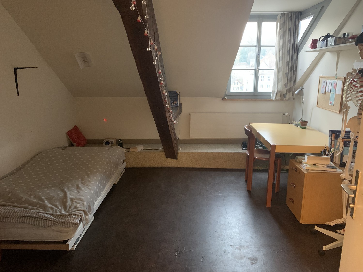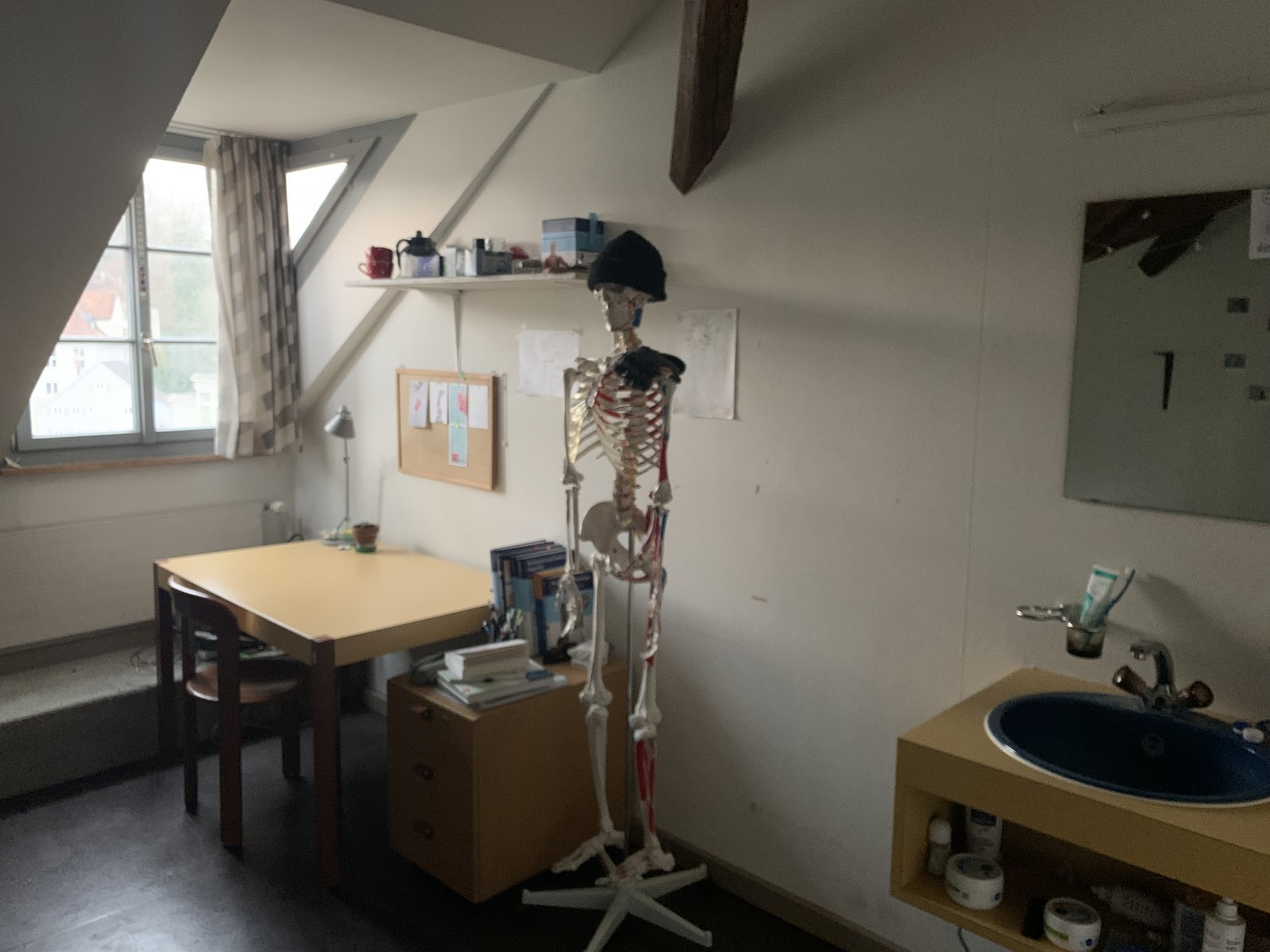 Das Türmlihuus ist ein Studentenwohnheim. Es gibt einen gemeinsame Küche, WC, Duschen, Gemeinschaftsraum und Waschküche. Das Zimmer ist möbliert und hat ein eigenes Lavabo. Das Zimmer ist zum untervermieten von anfangs Mai bis Ende Dezember 2026. Um einzuziehen muss man an einer Hochschule immatrikuliert sein und die WOKO Eigenschaften erfüllen. The Türmlihuus is a student residence. It has a shared kitchen, toilets, showers, a common room, and a laundry room. The room is furnished and has its own sink. The room is available for sublet from the beginning of May until the end of December 2026. To move in, you must be enrolled at a university and meet the WOKO requirements.