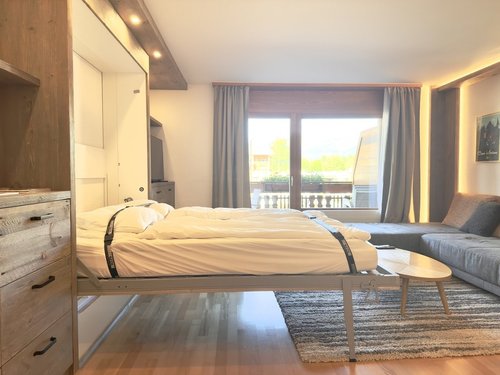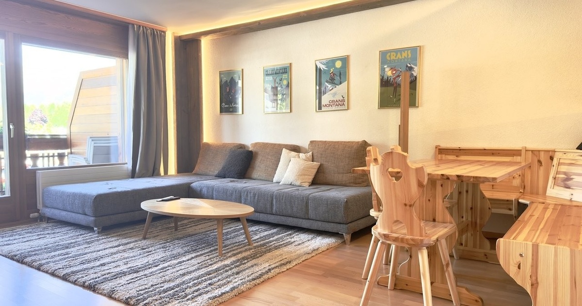 Linge de maison et vaisselle, internet illimité et buanderie commune • Nos prix sont sujets à variation, selon la période et les saisons. Plus d'informations ? Contactez-nous sans plus attendre ! ImmoCrans SA +41 (0)27 483 83 83 Available from: CHF 1'330.-/week * Idéalement situé à proximité immédiate du center, cet appartement de 2.5 pièces se trouve au coeur même de la station de Crans-Montana, dans une résidence de standing qui combine confort et tranquillité. A bus stop is located right in front of the building, allowing quick and convenient access to the ski lifts, without having to use your vehicle. The apartment enjoys a beautiful, unobstructed view of the Valais Alps, which can be admired from the balcony, accessible from the living room. The exposure guarantees excellent sunshine during the afternoon and evening, providing the ideal setting for relaxing after a day outdoors. This property is perfect for winter sports enthusiasts, as well as summer golf enthusiasts. It is also a perfect option for family vacations, thanks to an additional double bed installed in the living room, allowing several people to be accommodated comfortably. It is composed as follows: • 1 entrance with closet. • 1 living-dining room with built-in double bed; balcony access; • 1 fully equipped kitchen open to the living room; • 1 bedroom with double bed and 1 built-in single bed; • 1 bathroom with w.c. and washbasin; • 1 ski room • 1 parking space in underground garage.