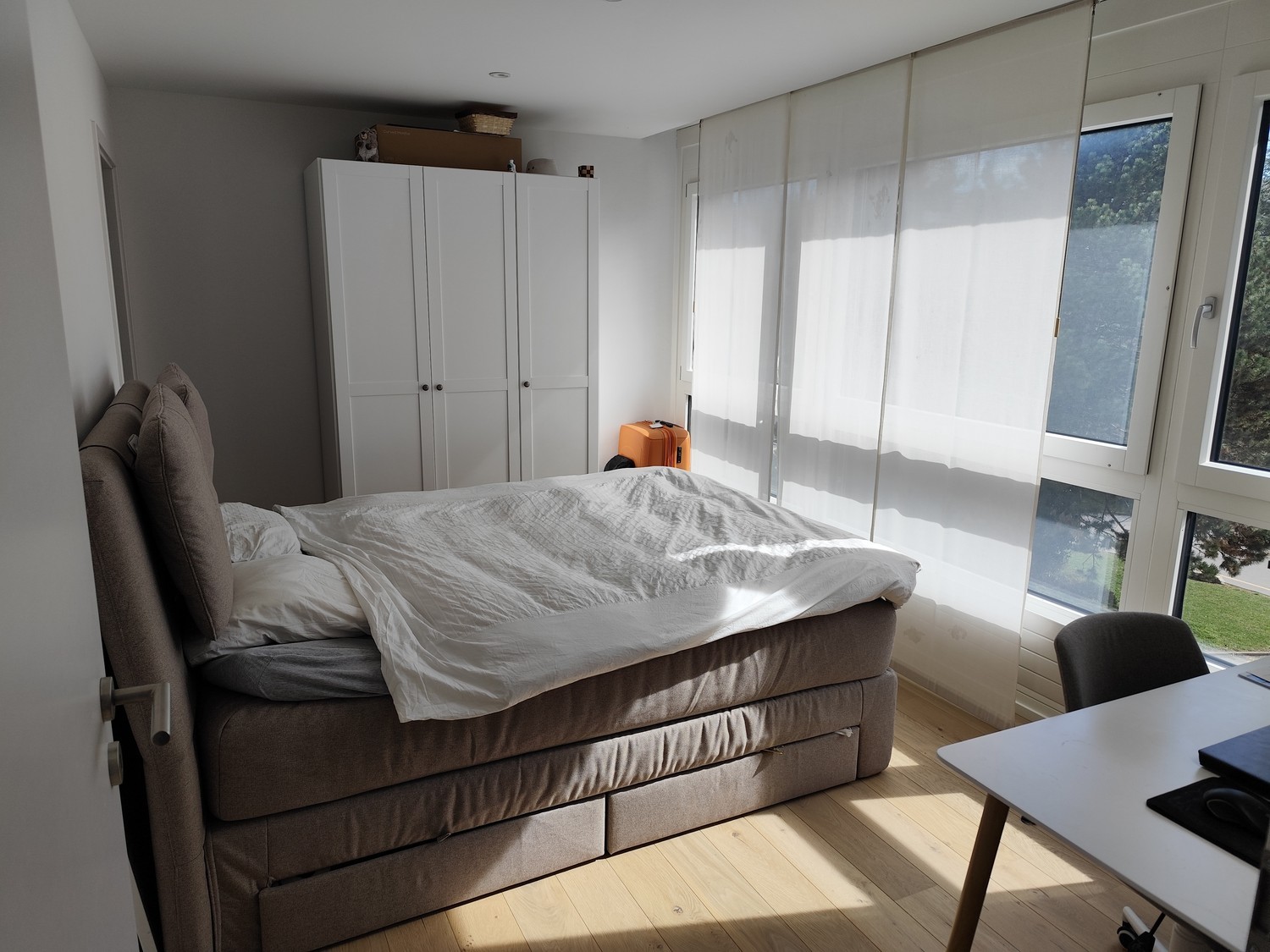 The shared apartment is ideal for student or young worker. We are looking for 1 roommate between 22-30 years old to complete our shared apartment of 3 young workers. We speak mainly English together but some of us speak also German, French and Portuguese.The entire apartment is top renovated and completely newly furnished. The apartment of 142m² has 4 rooms in total. The shared place includes a living room with fireplace 30m², fully equipped modern kitchen, 2 bathrooms and 1 separate toilet. 12m² covered terrace. Veloroom, basement and free laundry room in the building.The available room has a bed (160x200), spacious wardrobe, an office and a office chair.The renting price for this room is:840CHF/month, additional costs included (excluded electricity and internet).Near bus stop 7 minutes to the university and train station. 10 min by foot to the old town (Cathedral).Available from April with flexibility on request. 6months of renting minimum.