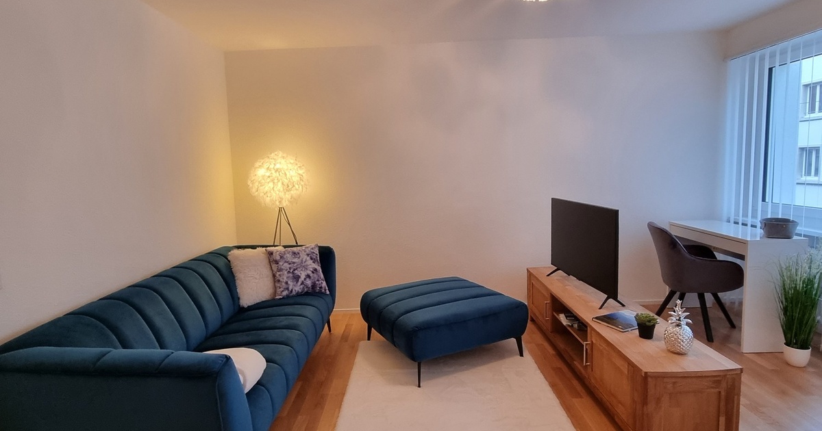 "Möbliertes 1,5 Zimmer Wohnung" Serviced Apartments First letting after complete renovation of 3 furnished, serviced flats at Davidsrain 7, 4056 Basel. Cosy furnished apartment located in a quiet area close to the university hospital and the Novartis Campus. Rent includes: Swisscom TV/WLAN, by-weeckly cleaning, change of bed linen, hand and bath towels, final cleaning For general use: 2 washing machines and 2 tumble dryers, Bicykle room, Garden seating area, Elevator 1st Floor rent CHF 1800.- additonal costs CHF 150.- 2nd Floor rent CHF 1800.- additional Costs CHF 150.- 5th Floor rent CHF 1800.- additional costs CHF 150.- Möblierte 1.5 - Zi Whg Davidsrain 7, 4056 Basel Möblierte Wohnung in ruhiger Umgebung, in der Nähe von der Uni, Kantonsspital und Novartis Campus. Swisscom TV/WLAN, zweiwöchentliche Reinigung, Wechsel Bettwäsche, Hand und Badetuch, Endreinigung. Die Wohnungen haben Zugang zum Garten und verfügen je über ein kleines Balkon. Öffentliche Parkplätze ( blaue Zone, Anwohnerparkkarte ) sind im Davidsrain vorhanden. 2 Waschmaschinen und 2 Tumbler, Veloraum, Gartensitzplatz, Lift 1\. OG Mietzins CHF 1800.- Nebenkosten 150.- 2\. OG Mietzins CHF 1800.- Nebenkosten 150.- 5\. OG Mietzins CHF 1800.- Nebenkosten 150.-