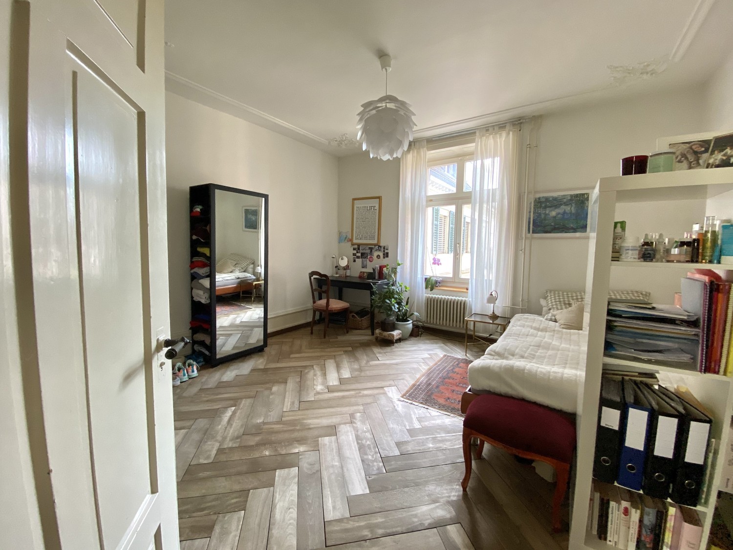 Das Zimmer ist ca. 17m2 gross mit wunderbarem alten Parkettboden, hohen Decken (mit Stukatur) und eigenem Einbauschrank. Die Wohnung mit Altbaucharm ist grosszügig und verfügt über ein Wohnzimmer und einen Balkon. Die Lage ist unschlagbar, alles was du brauchst, findet sich in unmittelbarer Nähe. Das Zimmer könnte nach Absprache bereits ab dem 01.04.2026 bezogen werden (spätestens ab dem 01.06.2026). Wir suchen: Eine freundliche, gesellige und ordentliche Person, die zu uns passt. Zu uns: Wir sind Maxi (27, Jus-Studentin) und David (31, Arzt). Wir sind offen, unkompliziert und mögens ordentlich. Wir geniessen ein spontanes gemeinsames Abendessen oder Drinks, schätzen es aber auch Raum für uns selbst zu haben. Unsere Freizeit verbringen wir gerne mit Freuden, sind sportlich, kulturell interessiert und gerne draussen unterwegs. Wir freuen uns von dir zu hören!