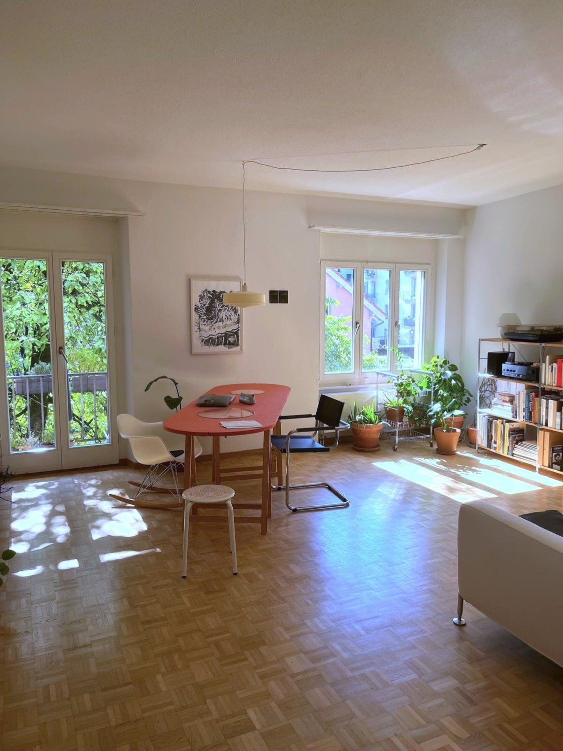 Deutsch 14m² Zimmer in heller 3er-WG in Zürich Wiedikon – ab Mitte März – 1180 CHF all inclusive In unserer schönen 3er-WG in Wiedikon wird ab Mitte März das grosse Zimmer frei, da Leo mit seiner Freundin zusammenzieht. Zimmer: • 14 m², unmöbliert • Fenster zu zwei Seiten (sehr hell) • 1180 CHF all inclusive Wohnung: • grosses Wohnzimmer mit Balkon (mit Kirschbaum davor) • zwei Badezimmer (1x mit Badewanne, 1x GästeWC) • ruhig gelegen direkt bei der Schmiede Wiedikon • zentral und sehr gut angebunden WG: Olin (31, Architekt) und Lena (28, beginnt im Herbst ihr Studium in Sozialer Arbeit nach mehreren Jahren im Verlag). Wir suchen eine offene, unkomplizierte Person für ein schönes Zusammenleben – keine Zweck-WG, aber mit genügend Raum für Privatsphäre. Bei Interesse schreibe uns gerne ein paar Zeilen zu Dir und verrate uns den letzten Film, den Du richtig toll fandest. /// English Bright 14m² room in shared flat (3 people) in Zurich Wiedikon – from mid-March – 1180 CHF all inclusive. A bright and spacious 3-person flat in Zurich Wiedikon is looking for a new flatmate from mid-March, as Leo is moving in with his girlfriend. Room: • 14 m², unfurnished • Windows on two sides • 1180 CHF all inclusive Flat: • Large living room with balcony (with a cherry tree right in front) • Two bathrooms • Quietly located next to Schmiede Wiedikon Flatmates: Olin (31, architect) and Lena (28, starting her studies in social work this autumn after several years working in publishing). We are looking for an open and easy-going person who values a respectful and friendly shared living situation with movie nights – not a functional flatshare. If interested, please send a few lines about yourself and your favourite movie.