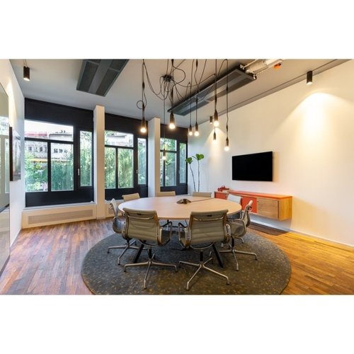 Dieses Angebot umfasst 10 m² möblierte private Bürofläche und 50 m² Gemeinschaftsflächen: Besprechungsräume, offener Coworking-Bereich, Lounge, Kaffeeküche und Empfangsbereich mit Büroausstattung.