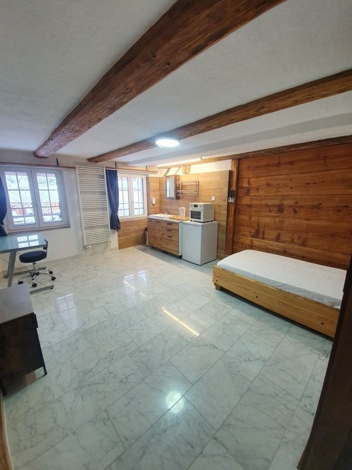 1\. Obergeschoss WG Zimmer Alles inklusive, keine Nebenkosten! Allgemein-Nutzungsbereich: • Küche mit Natursteinabdeckung, Möbelunter- Beleuchtung und LED- Streifen mit Farben, Dunstabzugshaube die übers Dach geführt wird, Lavabo mit verstellbarem Wasserarmatur, diverse Schränke • • Grosszügiges Badezimmer mit begehbarerer, grosser Dusche, Badewanne, Unterputz-WC, mit Spiegelschrank und Lavabo, Waschmaschine und Tumbler mit Wasserabführung , Lüftung wird auch übers Dach entlüftet. • • separates WC mit Spiegel und Monolith- WC, mit Lüftung die übers Dach geführt wird. • • ​​Korridor mit Bewegungssensor für Licht • Jedes einzelne Zimmer besitzt: • eine Hauszimmertüre, mit Klopfer, Spion und Kaba-Schloss/ Schliesssystem, eigener Briefkasten • • Sämtliche Böden sind gefliest, Wände z.T. Mit Naturstein, Klosterputz oder Baumwollputz mit Glitzer, Bodenheizung, Recooling, Klimaanlage im Dachgeschoss, elektrische Dachfenster mit Sonnenlammellenstoren, Verdunklungsvorhänge • • Lavabo mit Spiegelschrank, Kleiderschrank, Safe, Bürotisch, Wasserkocher, Grillbackofen, Kühlschrank, elektrisch öffnender Abfalleimer, Bett mit Matratze und Matratzenschoner • • diverse zusätzliche Steck- oder USB-Dosen, 43'' Fernseher, separater Internetanschluss mit Wifi • ​ • für die Beleuchtung ist gesorgt mit versch. Beleuchtungsmitteln und LED- Streifen mit verschiedenen Farben. • • Tiefgaragenparkplatz nicht inbegriffen • • Bei Vollstromfahrzeugen müsste zusätzlich eine Kopie der Fahrzeughaftpflicht beigelegt werden. • Wir freuen uns, Sie kennen zu lernen :o)