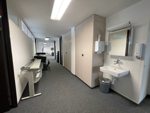 Per Ende Jahr 2026 vermieten wir diese grosszügige und vollausgebaute Bürofläche mit total 335 m² (gut unterteilbar) an gut erschlossener Lage in Wallisellen. Die Bürofläche liegt im 1. Obergeschoss und verfügt über folgende Highlights: − Praktische Grundrissaufteilung / Fläche kann gut unterteilt werden − Moderne Küche mit grosszügigem Aufenthaltsraum – Diverse Einbauschränke integriert – Elektrische Installationen in der Fläche über Brüstungskanäle bereits vorhanden – Zwei geschlechtergetrennte Toiletten im Treppenhaus – Budgetsicherheit dank pauschaler Nebenkosten – Zusätzliche Lager- und Gewerbefläche im Hochparterre (375 m2) mit guter Anlieferungssituation können zum gleichen Preis dazu gemietet werden. Die attraktive Lage bietet: – Erstklassige Anbindungen an den öffentlichen und privaten Verkehr – Einkaufsmöglichkeiten und diverse Dienstleister in kurzer Distanz – Aussenparkplätze können für CHF 100 mtl. dazu gemietet werden Gerne senden wir Ihnen auf Anfrage den Grundriss sowie das Factsheet zu und zeigen Ihnen die bezugsbereiten Räumlichkeiten bei einem unverbindlichen Besichtigungstermin. Haben wir Ihr Interesse geweckt? Dann freuen wir uns über Ihre Kontaktaufnahme!