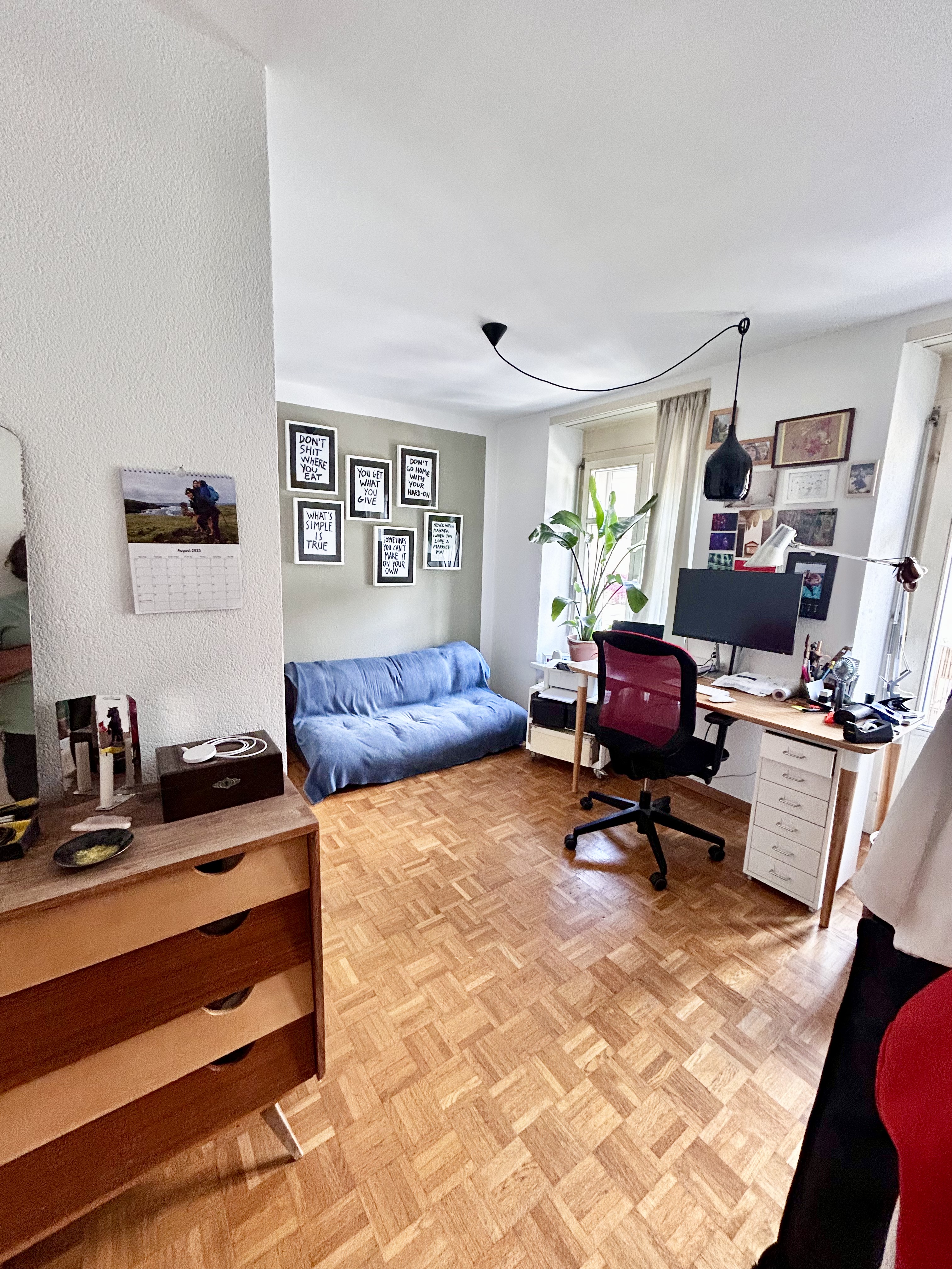 Zimmer mit Balkon im Kreis 5 – ab ca. 15. April 2026 (ca. 6 Monate)Ich vermiete mein teilmöbliertes Gästezimmer – bevorzugt an eine/n Wochenaufenthalter/in, die am Wochenende nicht vor Ort ist. Die Mietdauer ist zunächst auf ca. 6 Monate befristet, mit Option auf Verlängerung, wenn es zwischen uns gut funktioniert.Ich lebe offen schwul und freue mich über eine aufgeschlossene, empathische Person ab etwa 35 Jahren, für die ein respektvolles und wertschätzendes Zusammenleben selbstverständlich ist.Das Zimmer ist ca. 13 m² gross, teilmöbliert mit Futon, Kommode, Nachttisch und Lampen sowie eigenem Balkon mit Abendsonne. Es liegt ruhig zum Innenhof. Küche, Wohnzimmer und Bad werden gemeinsam genutzt.Waschmaschine und Tumbler befinden sich im Keller, Fahrradplatz im Hinterhof sowie Kellerabteil sind vorhanden. Keine Haustiere. Nebenkosten sind im Mietpreis inbegriffen. Kaution: eine Monatsmiete.Kurz zu mir: Ich bin 47, arbeite in Marketing & Kommunikation und mache aktuell eine Weiterbildung im Bereich Interior Design. Zuhause mag ich es ruhig und gemütlich – keine Partywohnung, aber gerne auch einmal ein gemeinsames Abendessen.Ich freue mich auf ein paar Zeilen über dich.Herzliche GrüsseDaniel