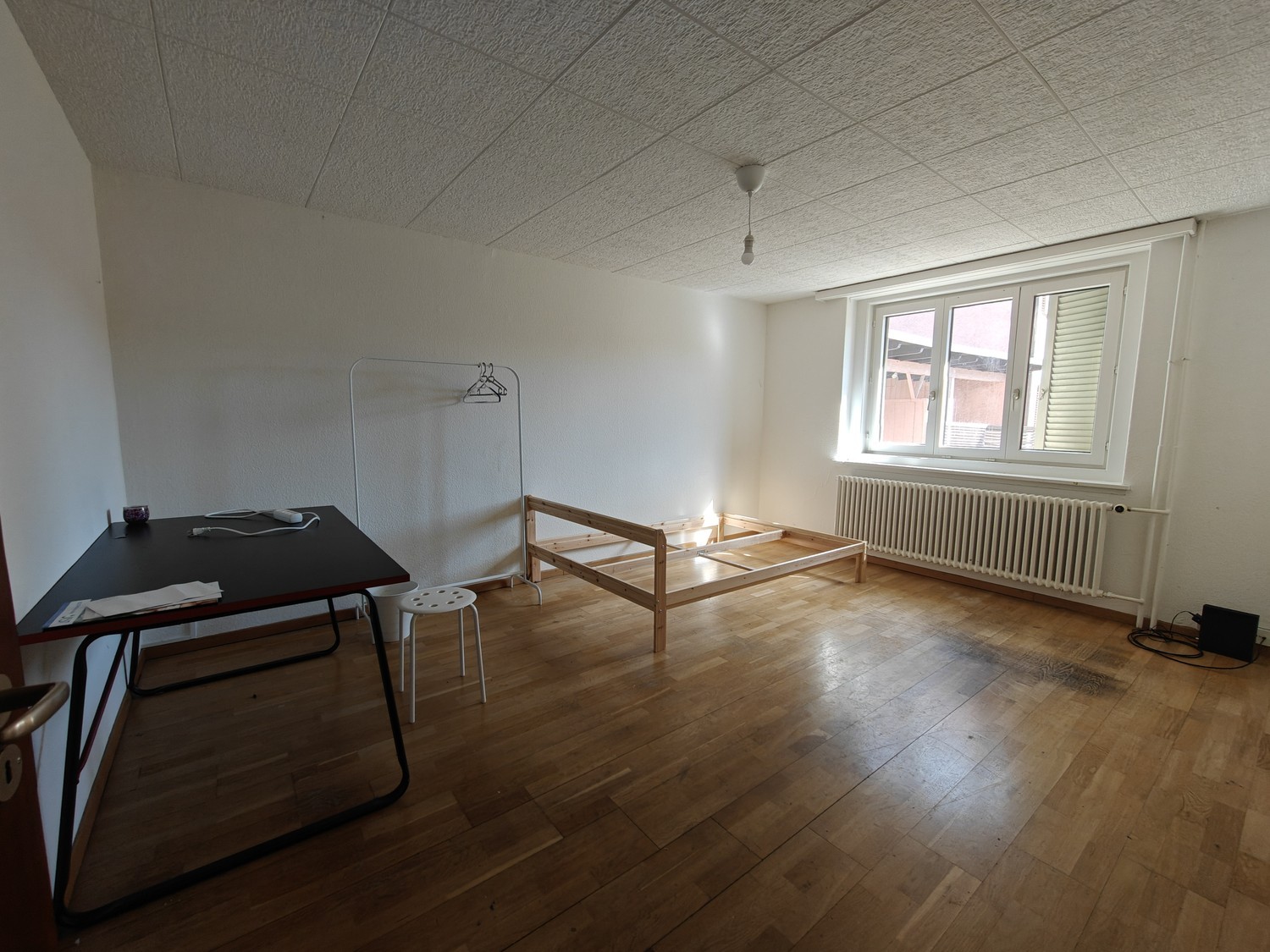 Available immediately until 30 June 2026. The rent is 540 CHF per month, including water, heating, and electricity. Registration is possible, and the contract is signed directly with the WFS/landlord. The room is located on the ground floor and is about 16.9 m². It currently includes a 1.4 × 2 m bed frame and a desk. The window faces the inner courtyard, making the room quiet and peaceful. The house is a townhouse with a garden, with 2 floors plus a basement. In total, it has 4 rooms, a kitchen, a bathroom, a storage room, and a laundry room. The other 3 flatmates are male Master’s students from ETH/UZH. The location is well connected: around 10 minutes to Oerlikon, 20–25 minutes to Irchel and Hönggerberg, and about 25 minutes to the main campus. Students only. Important: the house is expected to be demolished later, so extension is unlikely. Only Until until 30 June 2026.