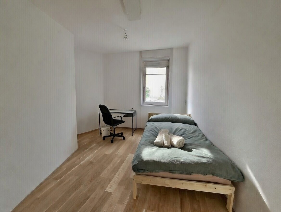 Eigenes Zimmer innerhalb von einem Community House mit Co-Working Möglichkeit im Haus. Dein Zimmer 13 m² gross, voll möbliert: Bett, Nachttisch, Schreibtisch, Stuhl, Garderobe (Bettwäsche auf Wunsch) Zeitraum: 1. April – ca. 30. Mai (oder nach Vereinbarung) Halbprivate Nasszelle, leicht abgetrennt vom Gemeinschaftsraum und wird nur mit einem anderen Zimmer geteilt. Miete: 1010 CHF pro Monat (inkl. Nebenkosten) + 100 CHF für Strom, Internet, Serafe, Möblierung, Haushaltsartikel)Gemeinsamer Bereich In der gleichen Wohnung befindet sich die grosse Küche und der Gemeinschaftsraum mit Wohnzimmer – hier halten sich regelmässig 13 Personen auf, da dies der zentrale Treffpunkt des gesamten Hauses ist Nutzung von Garten, Aussenbereich sowie den gemeinschaftlichen Einrichtungen Coworking Raum im Haus, wo du einen Arbeitsplatz dazu mieten kannst, falls gewünscht.Lage & Anbindung ÖV‑Haltestelle Klusplatz nur 8 Minuten zu Fuss entferntGemeinschaft & Atmosphäre Wir sind eine Hausgemeinschaft mit 13 weiteren Bewohnern. Das Haus wird aktuell noch fertig umgebaut, daher gibt es noch keine Fotos, wie es fertig ist. Es wird im April beim Einzug alles neu und schön sein (Parkettboden, weisse Wände, neue Küche und neues Bad). Du bist die erste Person, die im Zimmer wohnen wird. Regelmässige Gemeinschaftsessen – Du bist herzlich eingeladen, am Samstagabend teilzunehmen Unsere Hausordnung ist einzuhalten, ein freundlicher und respektvoller Umgang ist uns wichtigInteresse geweckt? Wir möchten dich kennenlernen, da wir in einem Community House wohnen, werden wir einander wohl öfters begegnen. Erzähl uns gerne etwas über dich: Wer bist du? Was sind deine Hobbys und Interessen und deine Arbeit/Studium? Was ist dir wichtig beim Wohnen? Bist du eher ein „Zuhause Typ“ oder lieber viel unterwegs? Schreibe auf die unterste Zeile von deinem Text das Wort: Textgelesen.Schreib uns eine kurze Vorstellung von dir – wir freuen uns darauf, dich kennenzulernen!