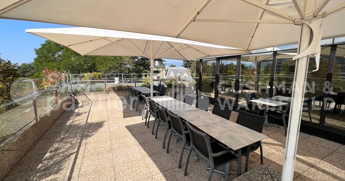 Au cœur du quartier des NATIONS, dans un îlot de verdure et situé à proximité immédiate du nouveau développement GreenVillage, ces bureaux de très belle facture et entièrement aménagés sont disponibles à la location. Cet immeuble entièrement vitré offre un cadre de travail privilégié, disposant de nombreuses terrasses extérieures et d’une belle vue dégagée. Ces bureaux s’adressent particulièrement à des Organisations Internationales ainsi qu’à des Missions Diplomatiques. 1’350 m² de bureaux • 550 m² au 3e étage • 760 m² au 2e étage • 250 m² au 1er étage • 40 m² de cuisine partagée au 1er étage avec une magnifique terrasse panoramique • Un escalier interne dessert les étages • Auditorium d’environ 200 personnes • Salle de fitness • Restaurant d’entreprise avec rooftop • Places de parking disponibles