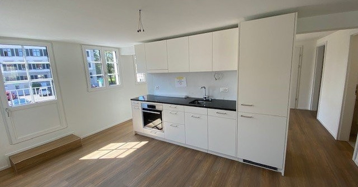 Die Wohnung überzeugt mit: • Heller Wohnbereich: Grosszügiger Raum mit Parkettboden und weissen Wänden, durchflutet von natürlichem Sonnenlicht • Moderne Küche: Weisse Schränke, schwarze Arbeitsplatten, Edelstahlspüle und Einbaubackofen sowie Geschirrspüler • Gemütlicher Balkon: Privater Aussenbereich • Modernes Badezimmer: Mit zeitgemässer Dusche, Fliesen und eleganter Beleuchtung