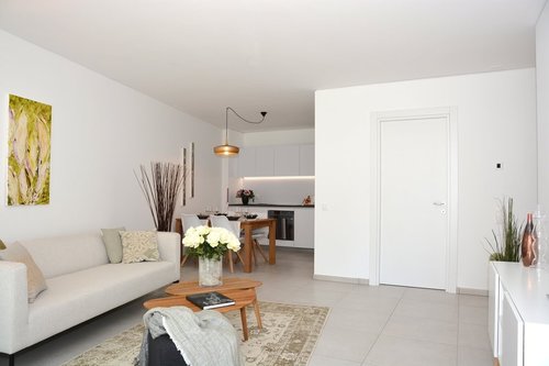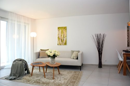L'appartamento vanta una superficie abitabile generosa. Entrando nell'appartamento si notano le finiture di pregio, con colori caldi e accoglienti. Ampie portefinestre scorrevoli collegano il luminoso soggiorno / pranzo con cucina a vista, alla terrazza. A sottolineare lo stile abitativo dagli standard elevati, vi sono delle spaziose camere da letto con armadi a muro e un bagno per gli ospiti con doccia. La camera padronale è munita di bagno en suite. L'appartamento dispone di una colonna lava-asciuga nel locale doccia e di una cantina.