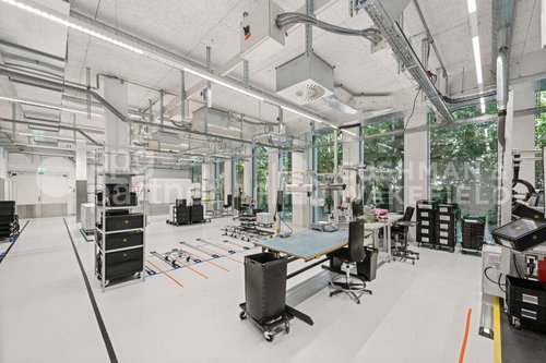 Aménagements et prestations • Ateliers High-Tech équipés : froid process, rail d’énergie, salle grise, courant secouru, hotte d’extraction, transformateur dédié, eau déminéralisée, local ATEX. • Bureaux modernes : entièrement aménagés, IT et salles de conférence équipées, coffee point, fibre optique (double réseau), contrôle d’accès, vidéosurveillance, mobilier en option. • Espaces communs premium : grande cafétéria avec terrasse, rooftop avec cuisine d’été, vestiaires avec douches, réception, parking (110 places voitures + 20 places motos) avec bornes de recharge électriques et vélos.