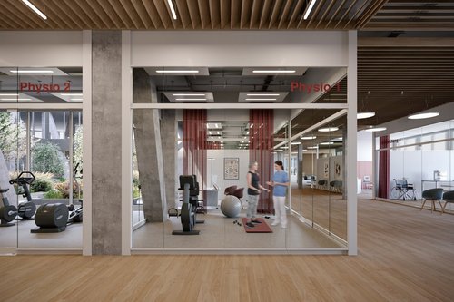 Ob Gesundheitszentrum, ambulante Klinik, Diagnostik, Fitness- oder Therapiecenter – im H² finden Sie flexible Flächen bis 5'000 m², die sich individuell gestalten lassen und die perfekten Voraussetzungen für medizinische Nutzungskonzepte bieten. Ausbauvarianten vom Edelrohbau bis bezugsfertig sind möglich – exakt abgestimmt auf Ihre Anforderungen.