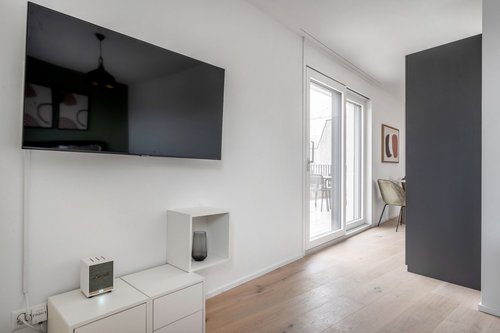 Durchdachtes Design mit maßgeschneiderten Oberflächen und moderner Einrichtung, und eine voll ausgestattete Küche, Sie werden das „Ich bin zu Hause“-Gefühl mit diesem Blueground Wohnung genießen. Egal, ob Sie in Ihrem charmant Wohnzimmer die neuesten und besten Unterhaltungssendungen über den Smart-TV oder den kabellosen Premium-Lautsprecher streamen oder sich auf der hochwertigen Matratze ausruhen – Sie werden sich in alles verlieben, was dieses Sihlfeld Wohnung zu bieten hat. Diese Wohnung bietet auch Wäscherei in der Wohnung.