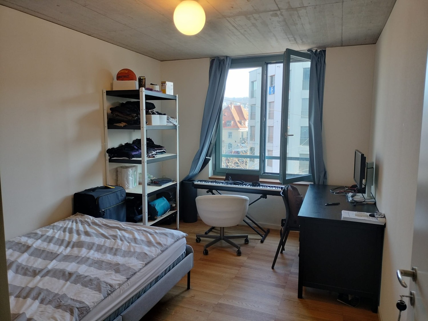 Bitte füge in deiner Anfrage eine Beschreibung von dir hinzu / Please include a description of yourself in the request. Deutsch: Ca. 14 m² teilmöbliertes JUWO-Zimmer in einer geräumigen WG, gute Isolierung, drei Badezimmer. Die Möbel können gerne zu einem fairen Preis übernommen werden. Wir suchen jemanden, der gesellig und ordentlich ist. Du musst die JUWO-Kriterien erfüllen. Wir sind: Simon (19), Leandro (19), beide studieren an der ZHdK, und Theo (24), studiert an der ETH Zürich. Keine Zweck-WG, wir wollen uns ab und zu zusammen aufhalten! Wir organisieren bald eine Besichtigung – eine Gelegenheit, uns kennenzulernen und unseren zukünftigen Mitbewohner zu treffen :) English: ~14 m2 JUWO Room in a spatious flatshare, good isolation, three bathrooms. Willing to sell the furniture for a fair price. We're looking for someone sociable and clean. You need to fulfill JUWO criteria. About us: Simon (19), Leandro (19), both studying at ZHdk, and Theo (24), studying at ETHZ. We actually hang out together, and we'd love for you to join in from time to time! We are organizing a viewing soon — a chance for you to meet us and for us to get to know our potential future flatmate :)