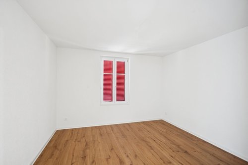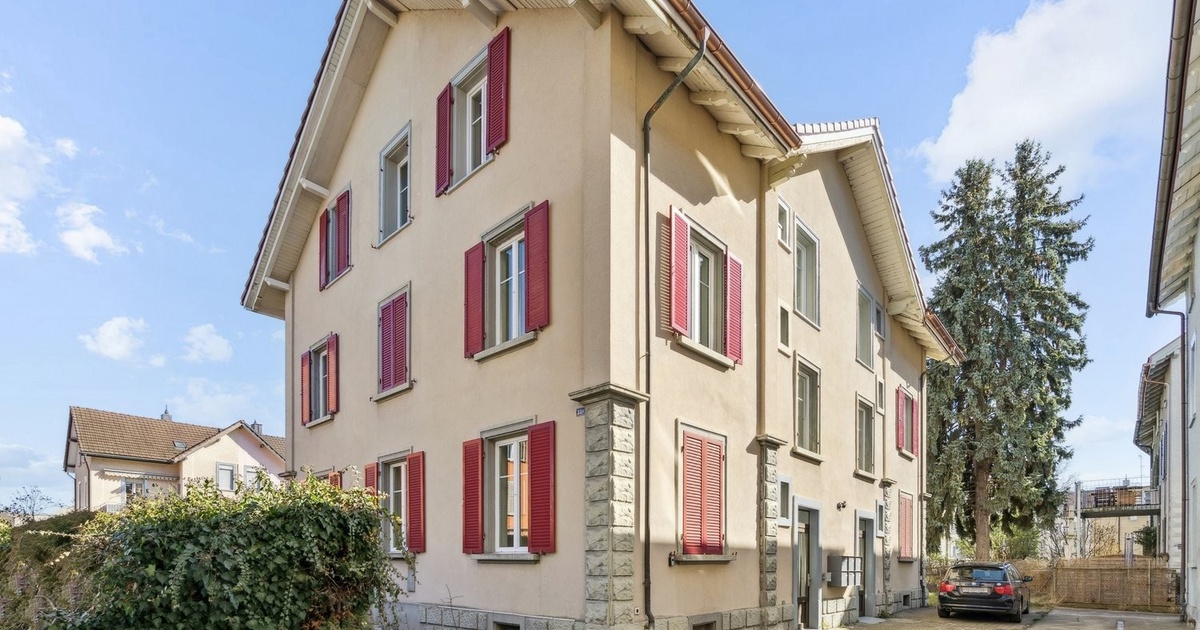 Diese kinderfreundliche Wohnung ist sofort verfügbar und eignet sich perfekt für Familien oder Paare, die Komfort und eine hervorragende Lage schätzen. Das 2-stöckige Haus mit beigen Aussenwänden und roten Fensterläden ist von viel Grün umgeben und bietet eine idyllische Wohnatmosphäre.