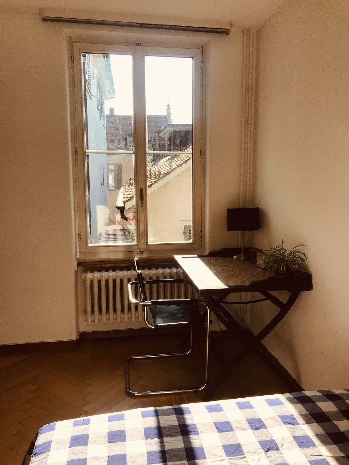 An absolute old town gem, wit highest private rooftop overlooking the city, lake and mountains and the coziest park in front of the house. Rooftop Gym, and great place for morning coffees in the sun, evening reading in the sunset or the occasional BBQ Party. This listing is for the second bedroom to rent for weekday commuters or potentially also for full flat-share (needs to be discussed on a case by case basis. Comes fully furnished and ready to move in: Bedsheets, Towels, furniture, super comfy bed by "Elite" brand - all supplied. If interested, please share about what you are looking for precisely and about you as a person, your work, interests and lifestyle.