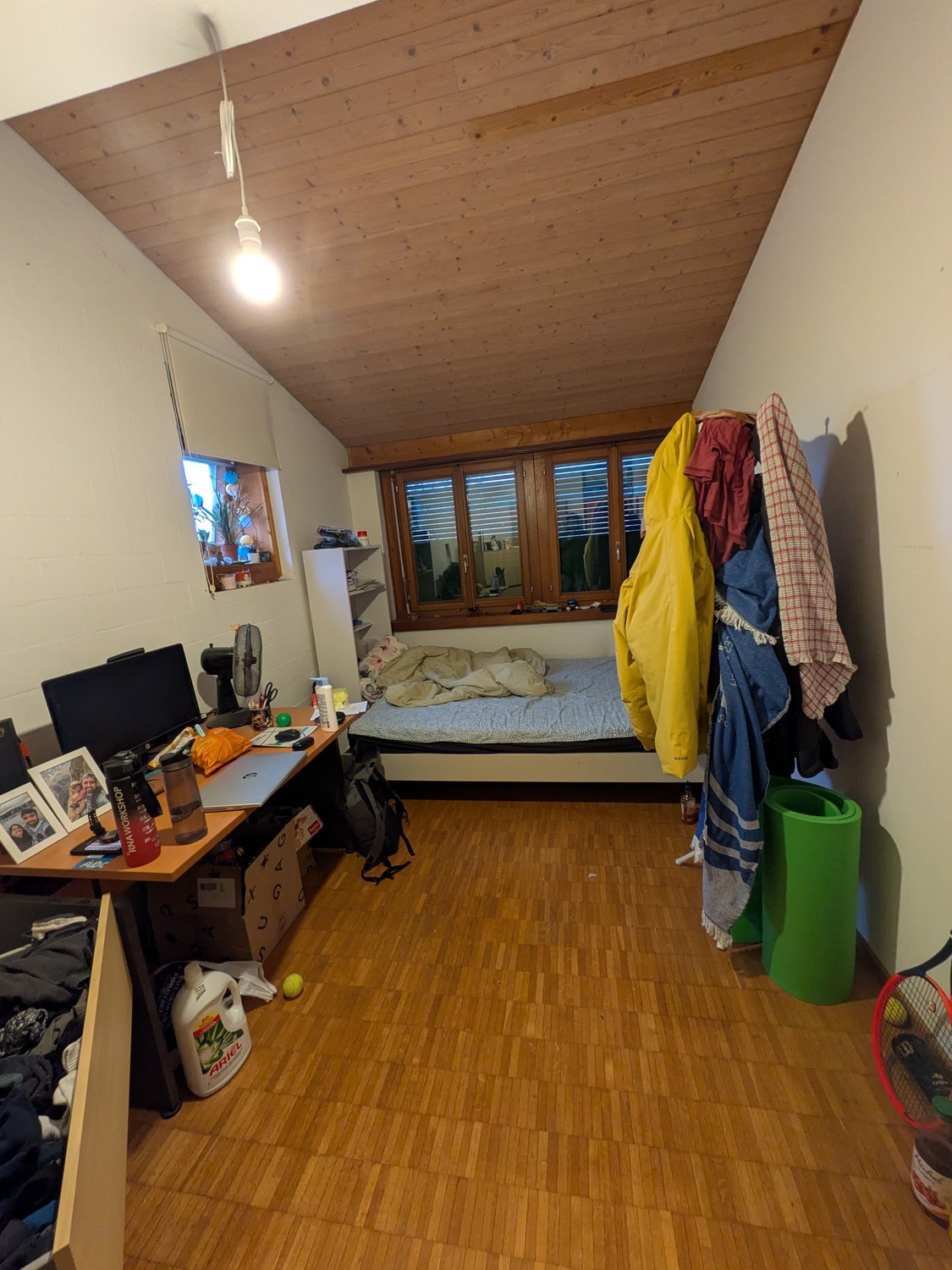 Very close to the University of Zurich (Irchel Campus) tram 9 is right outside and takes 10 minutes to reach university. Close to stettbach, (10 minutes walk) can be reached to Zurich HB in 8 minutes by train.You'll be sharing the place with two other people. Matthew and Tim. They're very easy going and uncomplicated people. The security deposit for the place is three months of salary.If you have any questions please feel free to contact me.