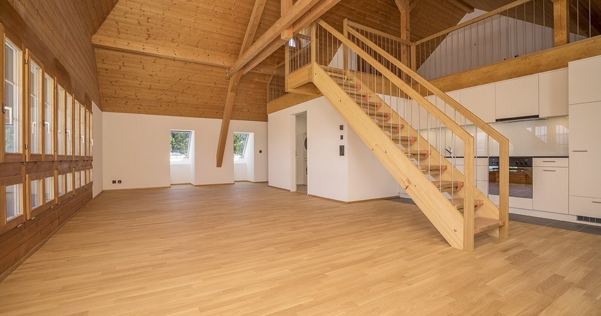 Ausstattung: • 3.5 Zimmer Galeriewohnung im 2. OG • Sanierter Bauernhausstil mit Holz-Charme • Parkettboden • Moderne Küche • Modernes Badezimmer, Nasszellen mit Platten • Eigener Waschturm in der Wohnung • Estrichabteil • Lift vorhanden
