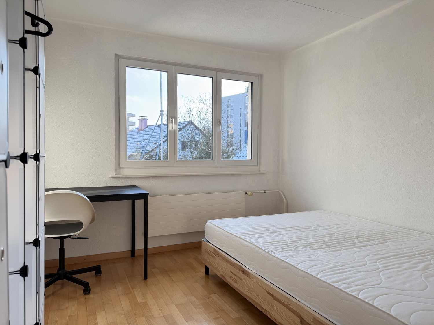 We can rent out this simply and practically furnished bedroom limited until September 30, 2026 in a good location in Zürich with excellent public transportation links. Utilities and Wifi are included in the price. There are three bed rooms in total and one is available (rent from CHF 850.00 / month). If you are interested send us a message and introduce yourself!