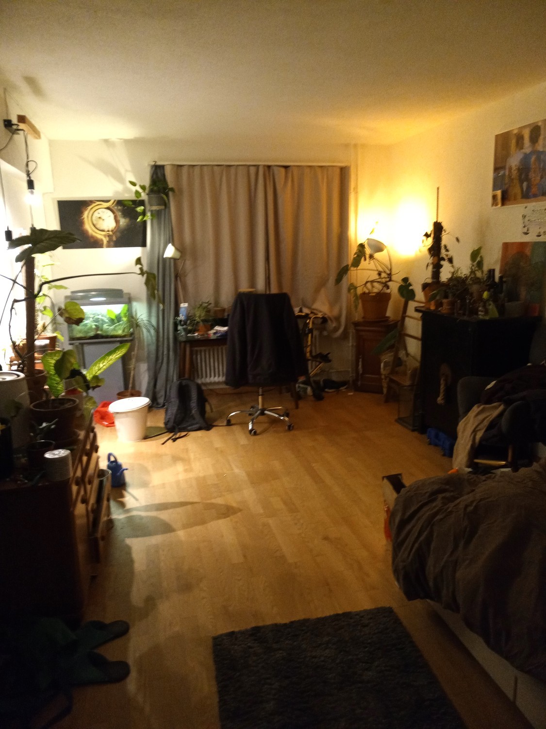 Hoi :) Ich ziehe in eine andere Stadt. Deswegen suche ich nun nach Ersatz für unser 3er Gespännli. Du würdest in das größte der 4 Zimmer ziehen und hast durch das große Südfenster auch jede Menge Licht. Außerdem hat die Wohnung ein großes Wohnzimmer mit um-die-Ecke-Balkon. Der Balkon verfügt bereits über ein Hochbeet welches letztes Jahr auch reichlich Ertrag lieferte. Wohnen würdest du mit Serge und Max, beide Anfang 30. Wir hatten alle einen unterschiedlichen Zeitplan haben aber trotzdem versucht regelmäßig zusammen zu essen. Wäre also schön wenn du keine reine Zweck-Wg suchen würdest. Wenn du also Lust auf eine entspannte WG mit coolen Leuten hast meld dich doch einfach und wir klären alle weiteren Fragen. Bis dann Tammo