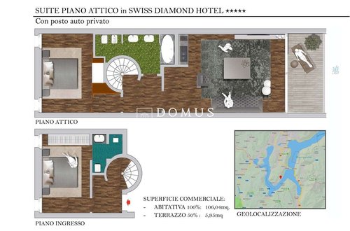 Introvabile suite, attico, di 3.5 locali, in hotel 5 stelle a Vico Morcote, sul lago di Lugano, con piscine, spa, palestra e ristorante di alto standing. L'appartamento è composto da ingresso, camera matrimoniale con bagno en suite, al piano inferiore, disimpegno, bagno, zona living con uscita sulla splendida terrazza vista lago, camera padronale. La suite è ideale come casa di vacanza, completamente arredato e dotato di posteggio esterno al prezzo di CHF 4'300 mese spese a forfait incluse (3.900 + 400).