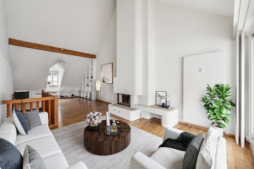 Die Wohnung überzeugt durch ihren besonderen Charme und eine durchdachte Raumaufteilung: • Grosszügige Einbauschränke im Schlafzimmer • Heller Wohnbereich mit Kamin • Wunderschöne Terrasse mit Blick auf das Rathaus • Moderne Küche mit Backofen im Hocheinbau • Eigene Waschmaschine und Tumbler in der Wohnung • Badezimmer mit Badewanne sowie separates Gäste-WC