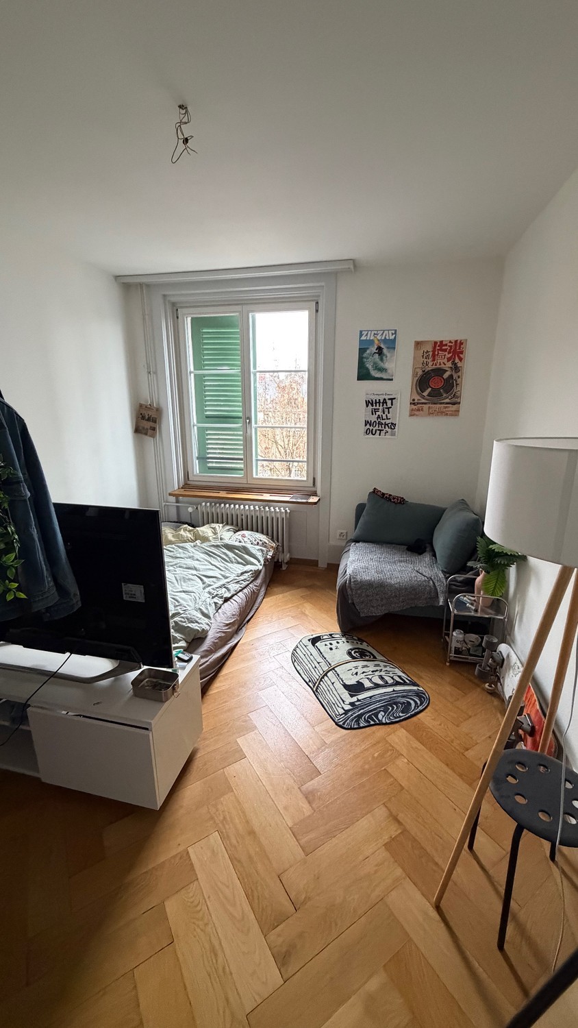 Room for rent in a 3people WG in the city of Bern. 5' from Bahnof Kitchen, bathroom and living room shared with other 2girls. Washing machine, Dishwasher, kitchen utensils and grill are all available for use. If you are interested, please contact me via contact form.