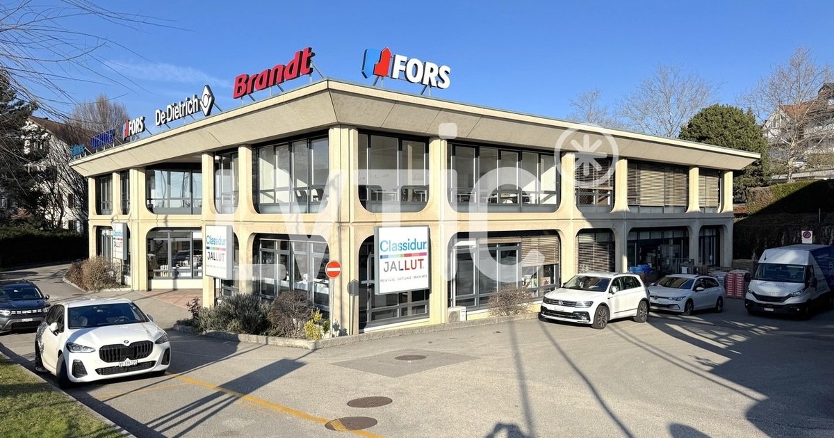 EXCLUSIVITE - Showroom, locaux, bureaux de 640 m2 à louer à Crissier Excellente visibilité sur un axe très passant Vitrine linéaire de 30 m Enseignes à proximité : Roche Bobois, Velomania, Miele... Hauteur : 2,65 m Dépôt au sous-sol de 60 m2 environ Kitchenette WC H/F et visiteurs Proche des transports publics et autoroute 6 Places de parking intérieures privatives Places visiteurs extérieures Accès : – Autoroute : 500 m – Bus : 190 m Disponibilité : immédiate Loyer : CHF 227.-/m2/an HT. HC. Dépôt : CHF 132.-/m2/an HT. HC. Places de parking : CHF 110.-/place/mois Charges (acompte) : CHF 35.-/m2/an (chauffage, eau, frais accessoires et entretien)