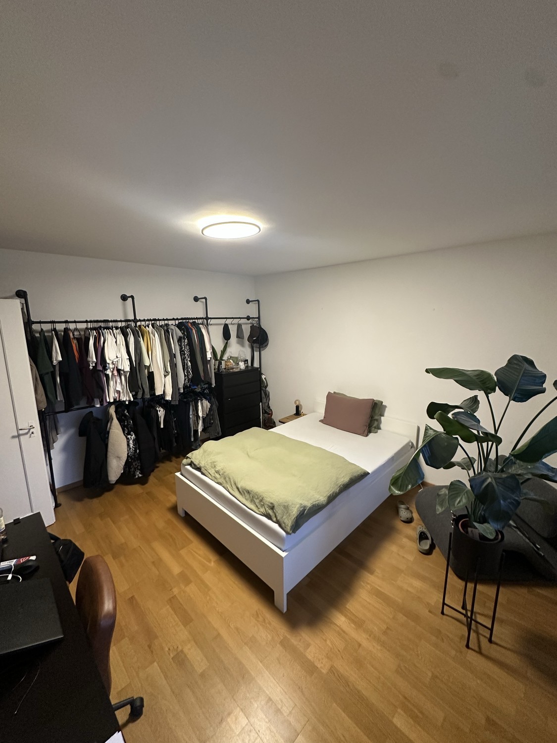 Hallo :) Ich vermiete befristet ein Zimmer mit viel Tageslicht von Juni bis September oder nach Vereinbarung. Das Zimmer ist 16m2 gross mit eigenem Balkon. Die Wohnung hat 2 Balkone und eine Dachterasse zur freien Benützung. Zudem hat die Wohnung ein Getrenntes WC und Bad. Ich suche eine Aufgeschlossene Person mit einem guten Sinn für zusammenleben. Ich schätze eine kommunikative und gepflegte Art sowie einen Schwatz bei einem Kaffe, Tee, Bier, Vino oder was auch immer. Einen guten Schuss Humor und einen gewissen Sinn für Ordnung in den Gemeinschaftsräumen ist natürlich auch super:) Ich bin Amun 26 und arbeite als Fachmann Gesundheit. In meiner Freizeit bin ich gerne aktiv und verbringe Zeit mit meinen Freund*innen. Im Sommer veranstalte ich immer gerne sogenannte Rooftop-Partys an welchen du und deine Friends auch sehr herzlich eingeladen sind. Ich freue mich sehr über deine Bewerbung und ein paar Infos zu dir.