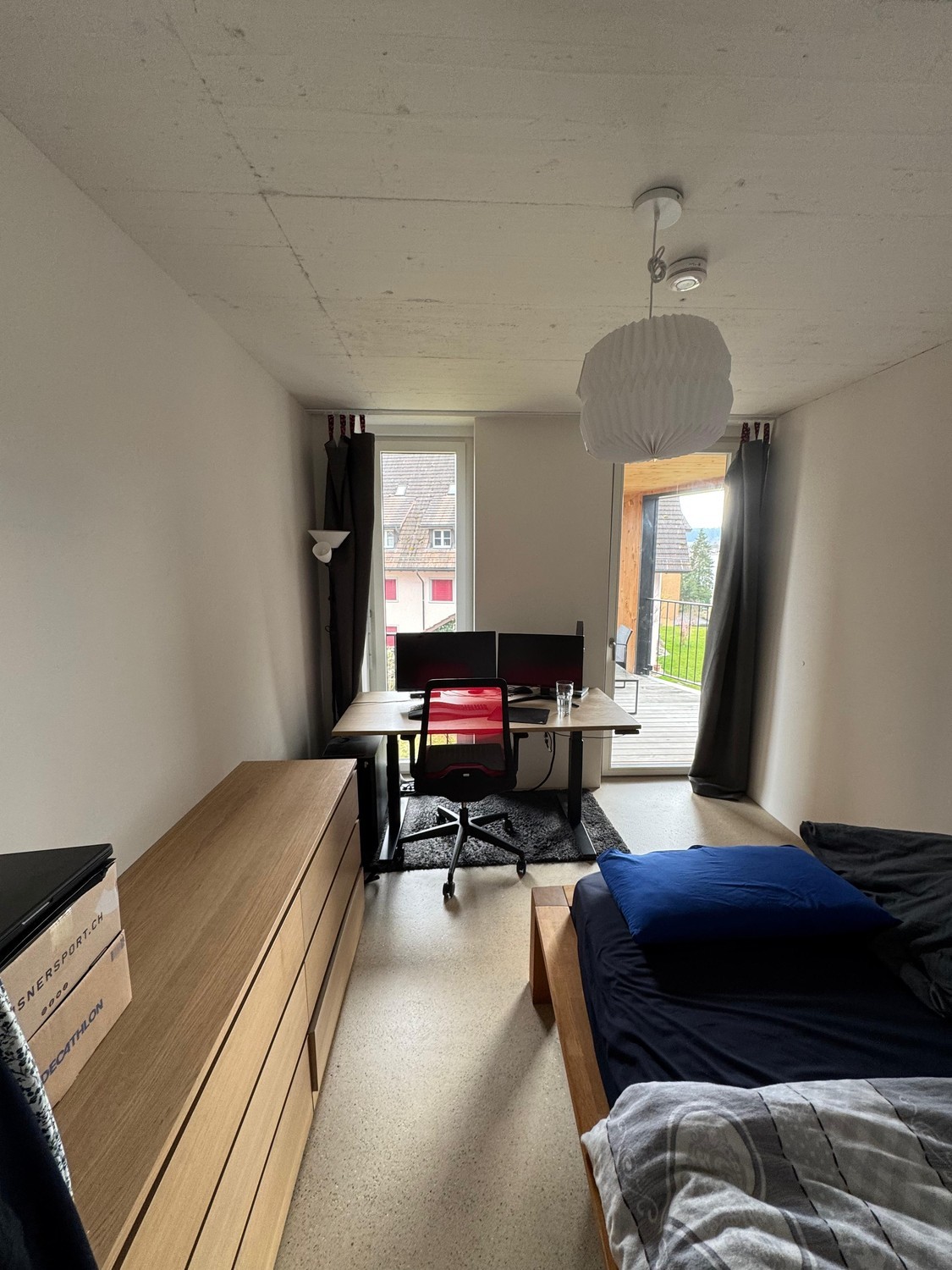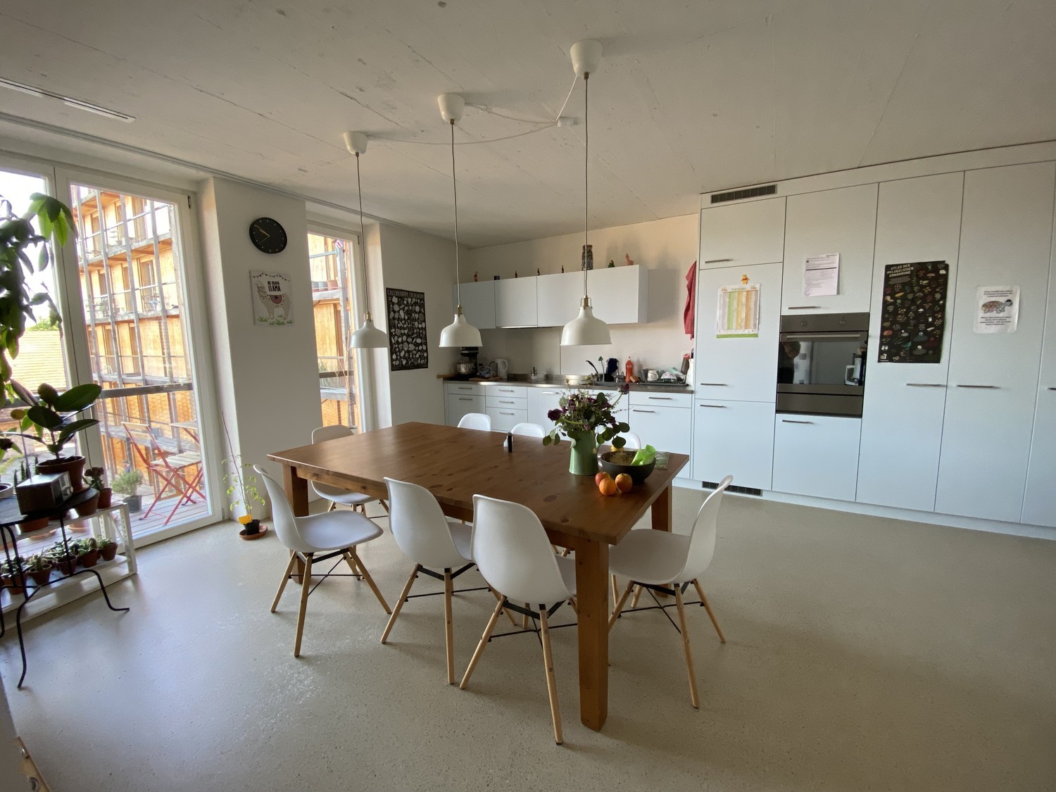 Dein zukünftiges Zimmer ist 12.1 m² gross. Die geräumige und lichtdurchflutete 5.5-Zimmerwohnung befindet im 2. Stock eines Neubaus und liegt direkt neben dem Bahnhof Winterthur Seen. Wohnung & Areal Die Wohnung besteht aus einem kombinierten Ess- und Wohnbereich, zwei Bädern und zwei Balkonen und einem Stauraum und ist komplett ausgestattet (eigene Möbel und Pflanzen zur Ergänzung sind auf jeden Fall willkommen). Damit wir uns wohlfühlen, halten wir die WG mit einem Ämtliplan ordentlich und sauber. Ebenfalls haben wir ein Kellerabteil und ein kleines Gartenbeet, wo du mithelfen darfst, aber nicht musst. Zusätzlich bietet das Wohnareal Grill- und Spielplatz inklusive Pizzaofen, Werkraum, Hausbar, Gemeinschaftsraum für Partys und Anlässe, Sauna mit Dachterrasse und zwei Velokeller. Mit dem Zug ist der Hauptbahnhof Winterthur in 7 Minuten erreichbar, zusätzlich sind die Buslinien 2 und 3 vorhanden. Im Umkreis von 10 Minuten liegen Migros, Aldi und Denner. Das WG-Zimmer Das Zimmer ist ab Anfang Mai oder nach Absprache verfügbar. Der Mietzins beträgt CHF 686.80 inkl. Nebenkosten. Zur Miete kommen 62.50 Haushaltsgeld für Internet, Serafe, Strom usw. dazu. Wir suchen eine:n Mitbewohner:in etwa in unserem Alter, der:die unsere vierköpfige WG ergänzt. Siehst du dich als offene Person, die sich gerne austauscht, aber genauso Zeit für sich schätzt, freuen wir uns sehr von dir zu hören! Über uns Wir sind: Milena, 29, arbeitet in einer Organisation, die freiwillige Bauernhofeinsätze für Jugendliche vermittelt und verbringt ihre Freizeit gerne in der Natur oder lässt sich mit guter Musik bewegen; Soë, 27, befindet sich in den letzten Zügen des Studiums Musikübertragung an der ZHdK, verbringt Zeit mit Freund:innen oder pfeift der WG ein Ständchen; Alessandro, 32, arbeitet als Fachlehrer für Musik an einer Sekundarschule. In seiner Freizeit spielt er gerne Saxophon und spielt in verschiedenen Bands mit. Wir halten regelmässig WG-Sitzungen ab, um Anstehendes zu besprechen und zu einem gemeinsamen Abendessen zusammenzukommen. Wir freuen uns über deine persönliche Nachricht inklusive einer kurzen Vorstellung.