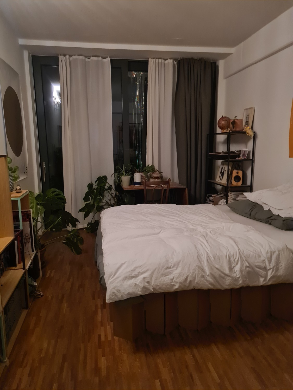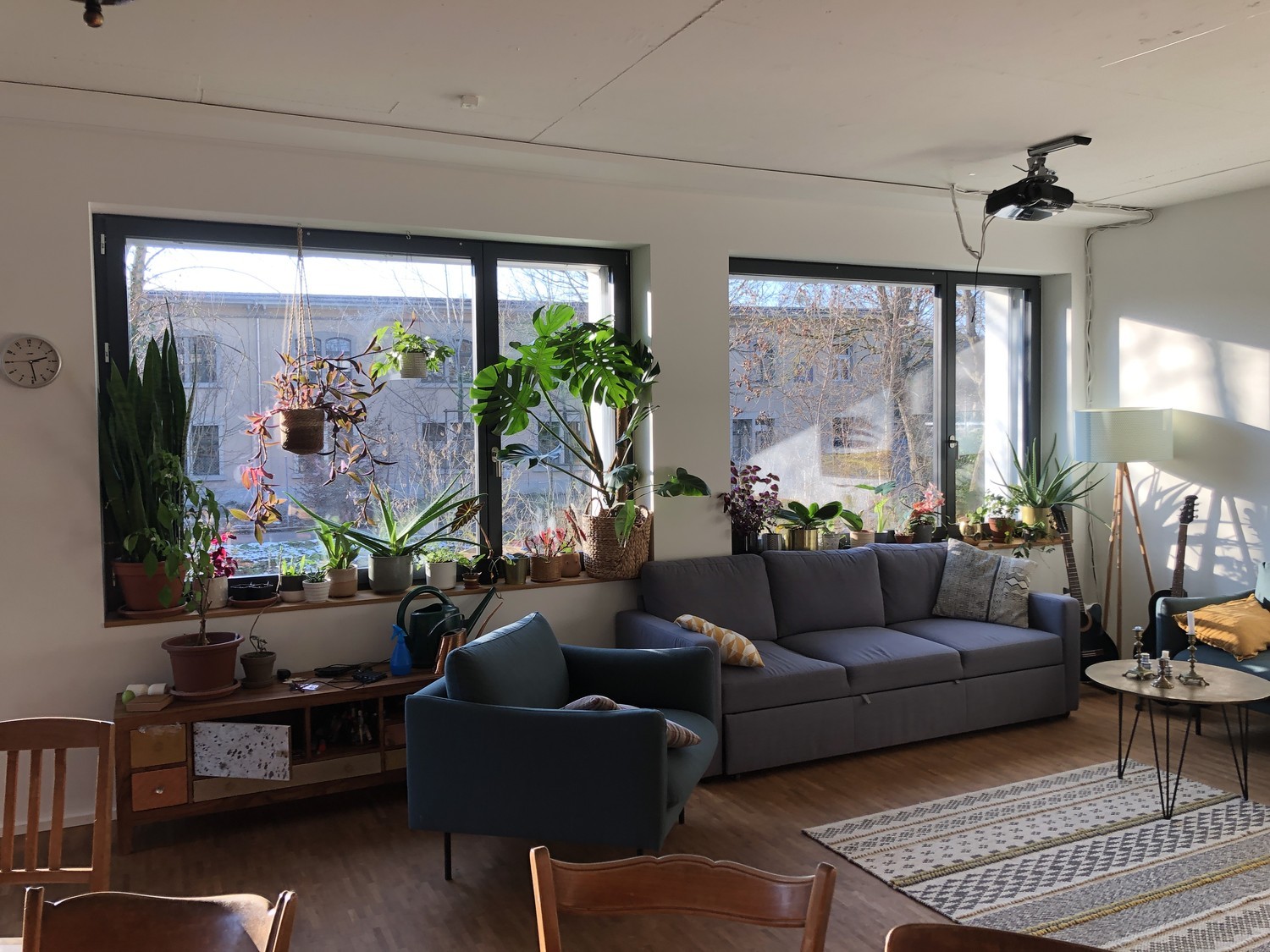Lust in der grosszügisten und modernsten Gross-WG in Winti zu wohnen? Wir (Yasmin und Raffaela, beide 34 Jahre alt) suchen vier neue Mitbewohner:innen für unsere Gross-WG. Wir wohnen seit fast 5 Jahren in der Wohnung, welche wir als Erstbezüger:innen beziehen durften. Aufgrund von wechselnden Lebensumständen verlassen uns im Sommer vier Mitbewohner:innen und eine tolle Ära geht leider zu Ende. Die 7.5-Zimmer-Wohnung ist 230m2 gross, für WG-Zwecke konzipiert und bietet sehr viel Platz fürs Wohnen, unzählige Bäder und eine einzigartige Infrastruktur (siehe Grundriss). Sie liegt ruhig, direkt am Mattenbach und am Naherholungsgebiet. Die Altstadt ist 10 Gehminuten entfernt. Es werden vier unmöbilierte Zimmer frei: – 2 Zimmer (14m2). Badezimmer zum Teilen mit 1 Person (1. Juni und 1. Juli) beide 860.- CHF inkl. NK akonto – 1 Zimmer (18m2) mit eigenem Badezimmer (1. August) 1060.- CHF inkl. NK akonto – 1 Zimmer (15m2) mit Zugang zum Balkon. Badezimmer zum Teilen mit 1 Person (1. August) 910 .- CHF inkl. NK akonto Weitere gemeinschaftliche Infrastruktur: – grosse, offene Wohnküche – Bad mit Badewanne und Wäscheturm – 2 weitere Waschmaschinen & 1 Tumbler mit 2 weiteren Mietparteien geteilt – eigener Sitzplatz mit Grill und grosser Gemeinschaftsgarten – Balkon – Heimkino – Gemeinschaftsraum, der auch für private Zwecke gemietet werden kann – Pingpongtisch & Tischfussballtisch – Grosses Kellerabteil – Gästezimmer (Zusätzlich zur Miete 35.- pro Person / pro Monat. Bedarf kann im Verlauf diskutiert werden.) – Katzen nicht erlaubt In den letzten fünf Jahren haben wir gelernt Bedürfnisse und Erwartungen wohlwollend und leicht zu verhandeln und wollen das weiter tun. Wir freuen uns auf Menschen, die Freude am gemeinschaftlichen Zusammenleben haben und diesen wunderbaren Ort mit uns aktiv mitgestalten und beleben möchten. Hast du Interesse? Kontaktiere uns gerne via Kontaktformular und schreibe ein paar Zeilen über dich. Wir freuen uns.
