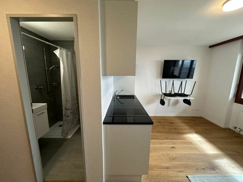 Kurzbeschrieb Kompaktes Studio im 1. Obergeschoss, 2024 umfassend renoviert und dadurch in neuwertigem Zustand . Möbliert mit gepflegten, gebrauchten Möbeln . Ideal für eine Einzelperson, die eine funktionale, bezugsbereite Wohnung sucht.