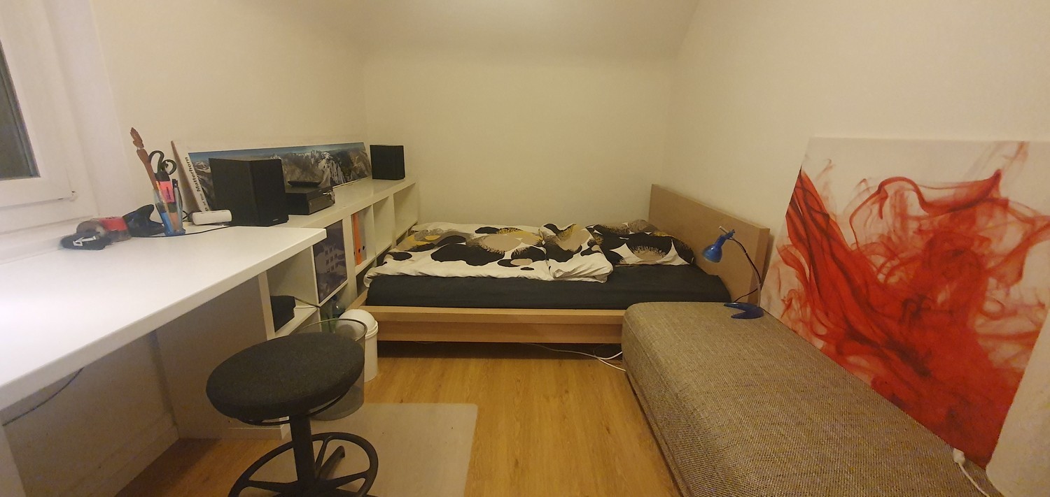 • Untermiete auf Zeit ab 01.05.2026 bis Ende September oder Ende Oktober 2026 (flexibel). • Der Mietzins beträgt 923 CHF/Monat. Enthalten sind Internet (WLan), Wasser, Heizung und Strom. • Die Wohngemeinschaft legt grossen Wert auf ein gemeinschaftliches Miteinander. Eine Beteiligung am WG-Leben wird erwartet. Die WG-Mitbewohner sind ca. 50 Jahre alt, aber noch jung geblieben. • Es leben zwei Katzen in der Wohnung. • Das Zimmer hat ca. 12 m2 gross. • Die Wohnung befindet sich keine 200 m vom Bahnhof Altstetten entfernt. Sehr gute Anbindung mit den öffentlichen Verkehrsmitteln, unter anderem zum Hauptbahnhof Zürich. • Die Wohnung ist trotzdem sehr ruhig gelegen. • Wohnzimmer, Küche mit Esstisch und Bad sind für alle WG-Mitglieder nutzbar. • Die Küche verfügt über eine Spülmaschine, Herd, Backofen, Kühlschrank, Gefrierschrank (integriert). • Waschmaschine und Wäschetrockner sind im Untergeschoss zur Mitbenutzung vorhanden. • Die Wohnung und das Zimmer sind in einem sehr guten Zustand, alles ist gepflegt und sauber. • Es werden alle persönlichen Sachen aus dem Zimmer geräumt, somit steht dieses dem Untermieter zur «ungestörten» Nutzung zur Verfügung. Solltest du Interesse haben, dann melde dich bitte. Viele Grüsse, Bernhard