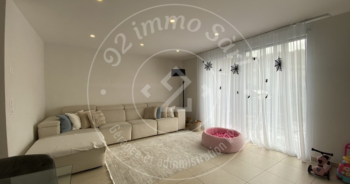 Rent: CHF 2'050.- Individual charges extra: CHF 200.- 2 parking spaces extra: CHF 150.- Total = 2400.- Available immediately For all inquiries please contact O2 immo management Application form to be sent: info@o2immo.ch Form to be downloaded / 3 last payslips / ID / debt enforcement office less than 3 months old / residence permit if foreigner. Scopri una villa bifamiliare di 4,5 locali con giardino privato a Prez-vers-Noreaz! • Ingresso con armadi a muro a muro • Cucina a vista completamente attrezzata (frigorifero, congelatore, piano cottura, cappa, lavastoviglie, forno) • Ampio soggiorno luminoso • Grande terrazza con giardino privato • 3 buone camere da letto • 1 bagno di famiglia / 1 WC ospiti • 1 Galetas • Servizio al piano interrato con colonna di lavaggio • Grande scantinato disponibile, possibilità, sala giochi, sala sportiva.... • 1 Cantina / 1 locale tecnico • 2 posteggi obbligatori • 1 rimessa